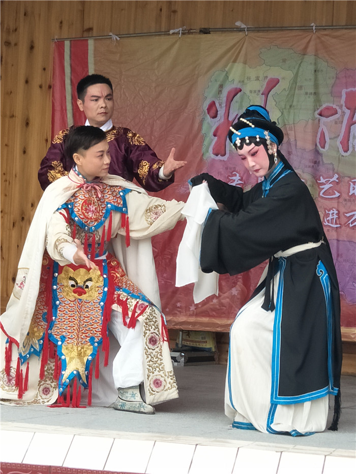 台上,演员们唱腔悠扬,青衫白袖舞动,杂技小品诙谐幽默、技艺高超。演员们采用村民们喜闻乐见的文艺形式,通过歌舞、曲艺、小品、杂技等把一出出文化大戏送到村民家门口。台下,村民们看得有滋有味,掌声连连。
