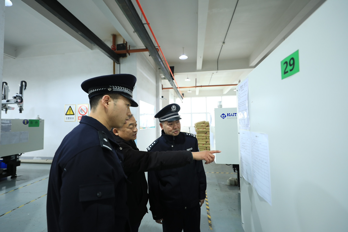 检查中,民警深入辖区企业,与企业负责人面对面交流,详细了解企业当前的生产规模、员工返岗等情况,认真倾听企业在复工复产过程中,遇到的困难和问题。并针对各企业的安全防范制度、值班制度、应急处置预案以及安保器材配备和“人防、物防、技防”措施等进行细致检查,认真查阅相关值班记录与巡查记录,对发现的安全隐患问题要求立即整改,并要求企业相关负责人持续做好内部安全隐患自检自查工作,切实增强内部安全防范能力,严防各类安全生产事故发生。同时,民警还向企业员工广泛开展防火、防盗、反诈等内容的安全宣传和警示教育,不断提升企业员工安全防范意识。