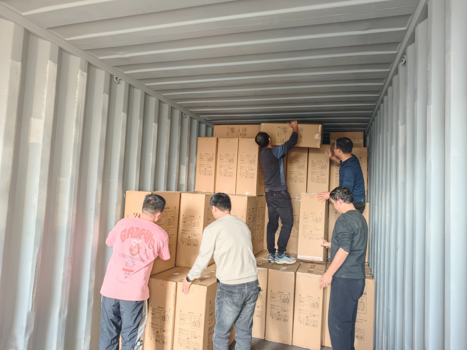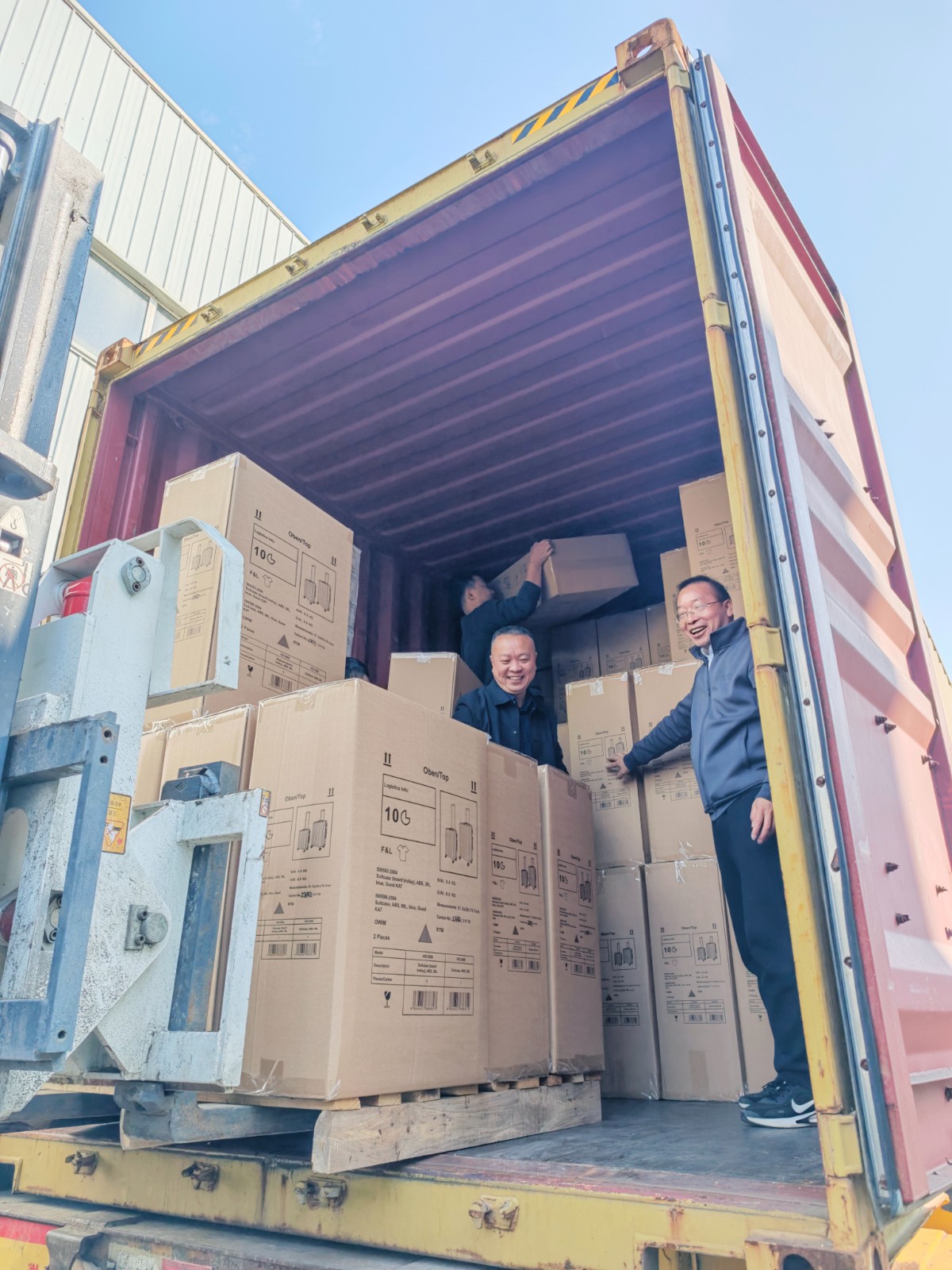 当天清晨,参与服务活动的人员准时集结在享同实业组装车间门口。大家迅速以十人一组的形式分组就位,在企业技术人员的简要指导下,投入到箱包整理、核对、装箱、搬运的全流程工作中。车间内,传送带不停运转,一箱箱设计新颖、品质优良的成品箱包经大家的手仔细清点、整齐码放,再合力搬运至货车箱柜,流水线式的协作让装箱效率大幅提升。