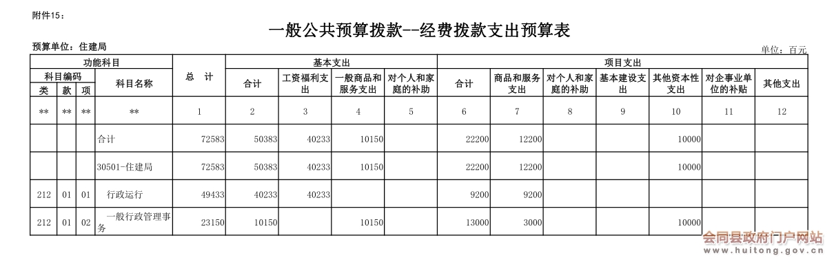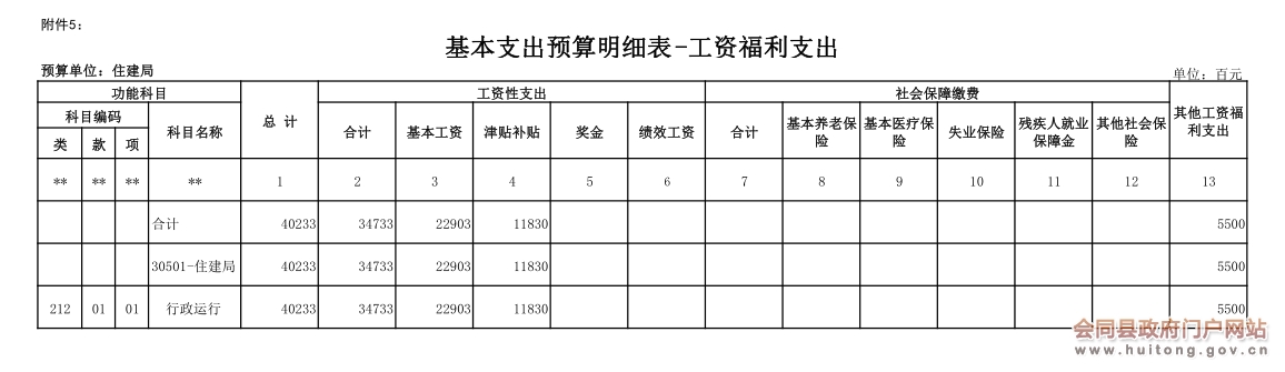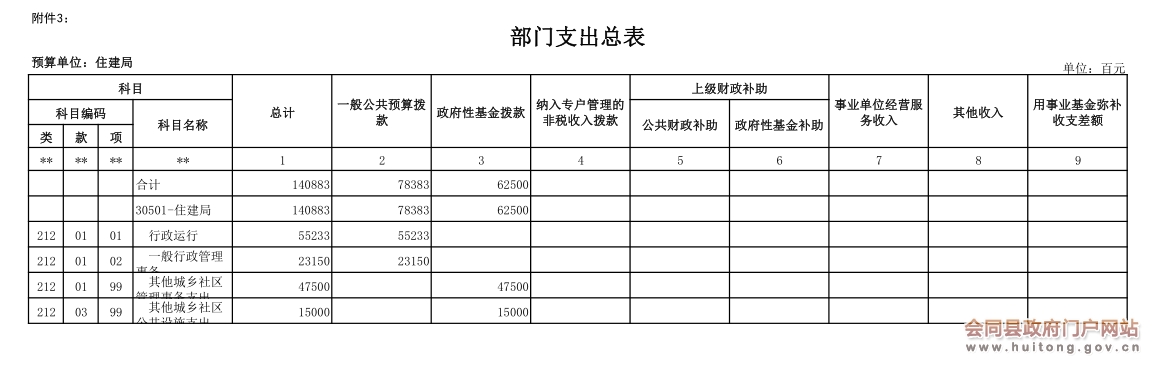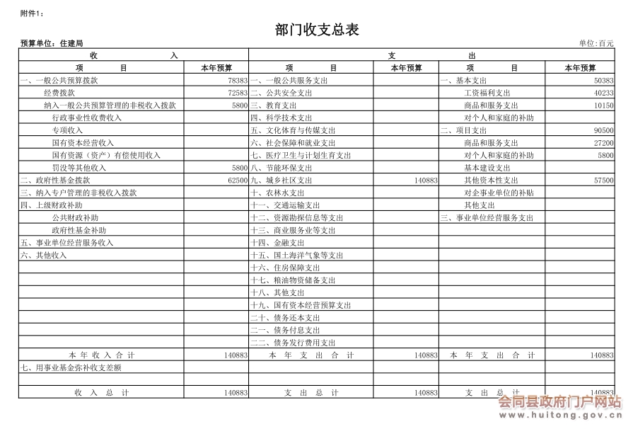 (二)预算支出情况:2017年预算支出为140883百元。其中工资福利支出40233百元,商品和服务支10150百元,一般公共预算项目支出 28000百元,政府性基金项目支出62500百元。