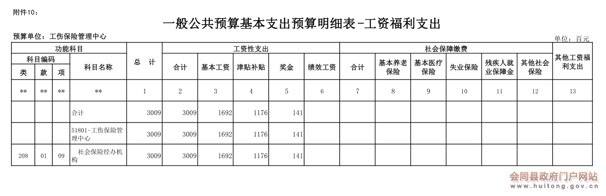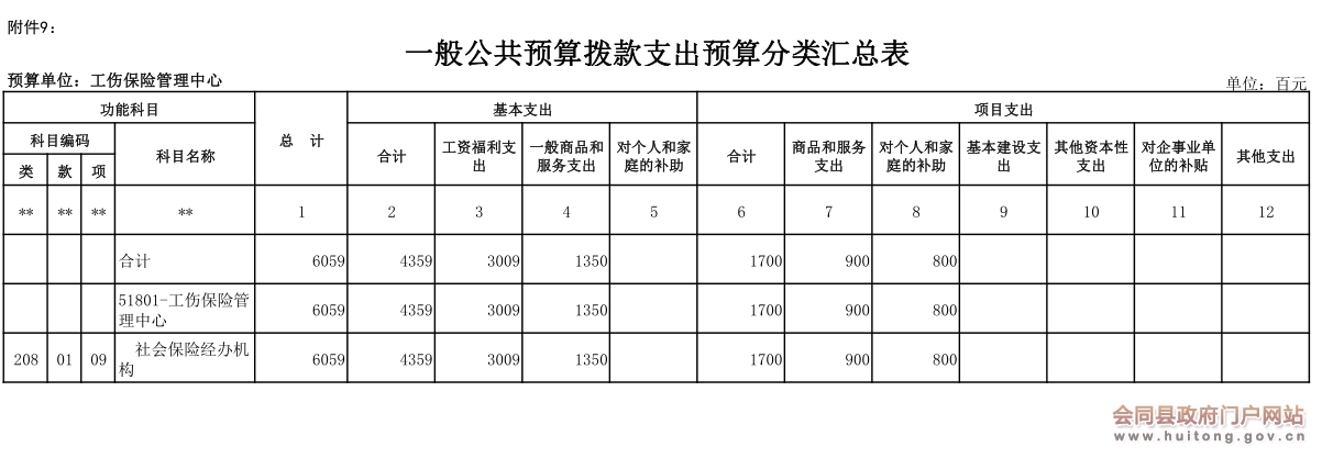 (三)项目支出情况:安排项目支出1700百元,具体项目情况如下:老工伤待遇县级配套项目 800百元,工伤保险基金目标管理项目900百元。