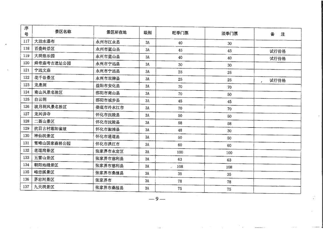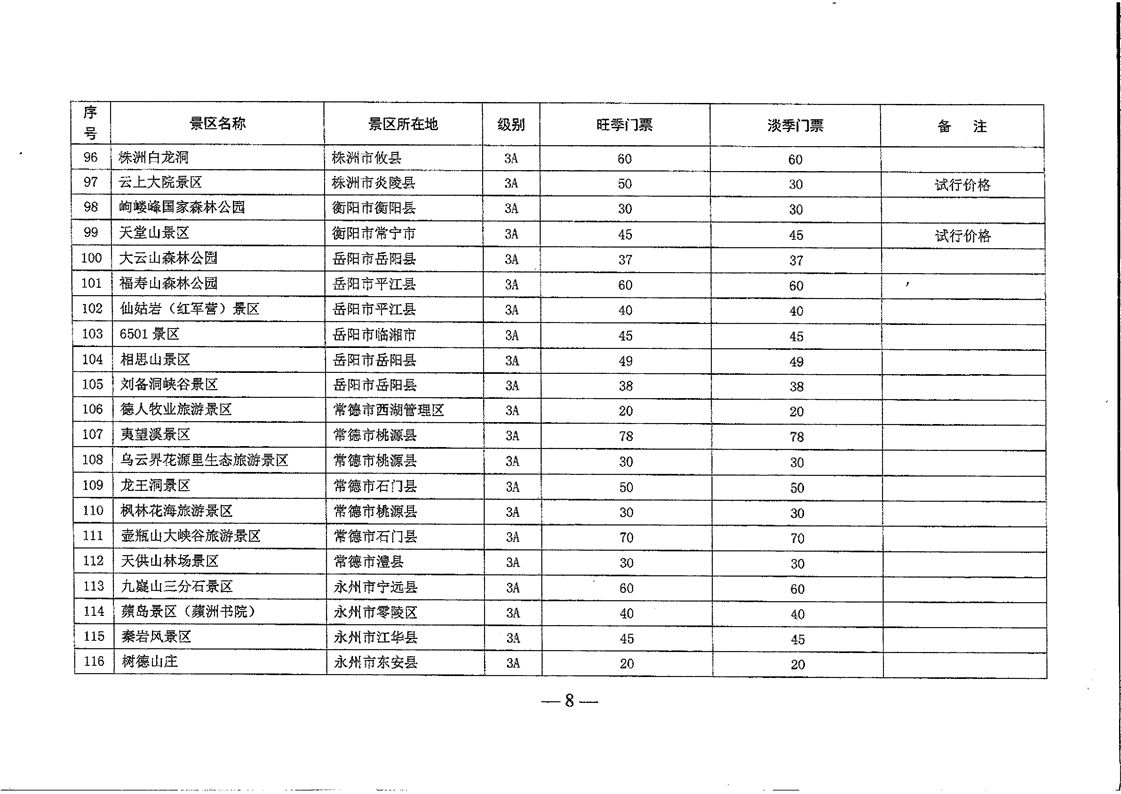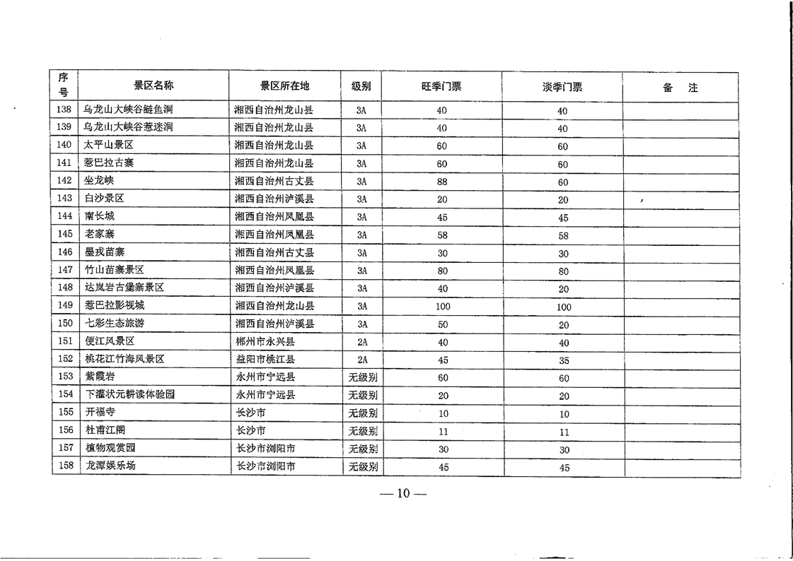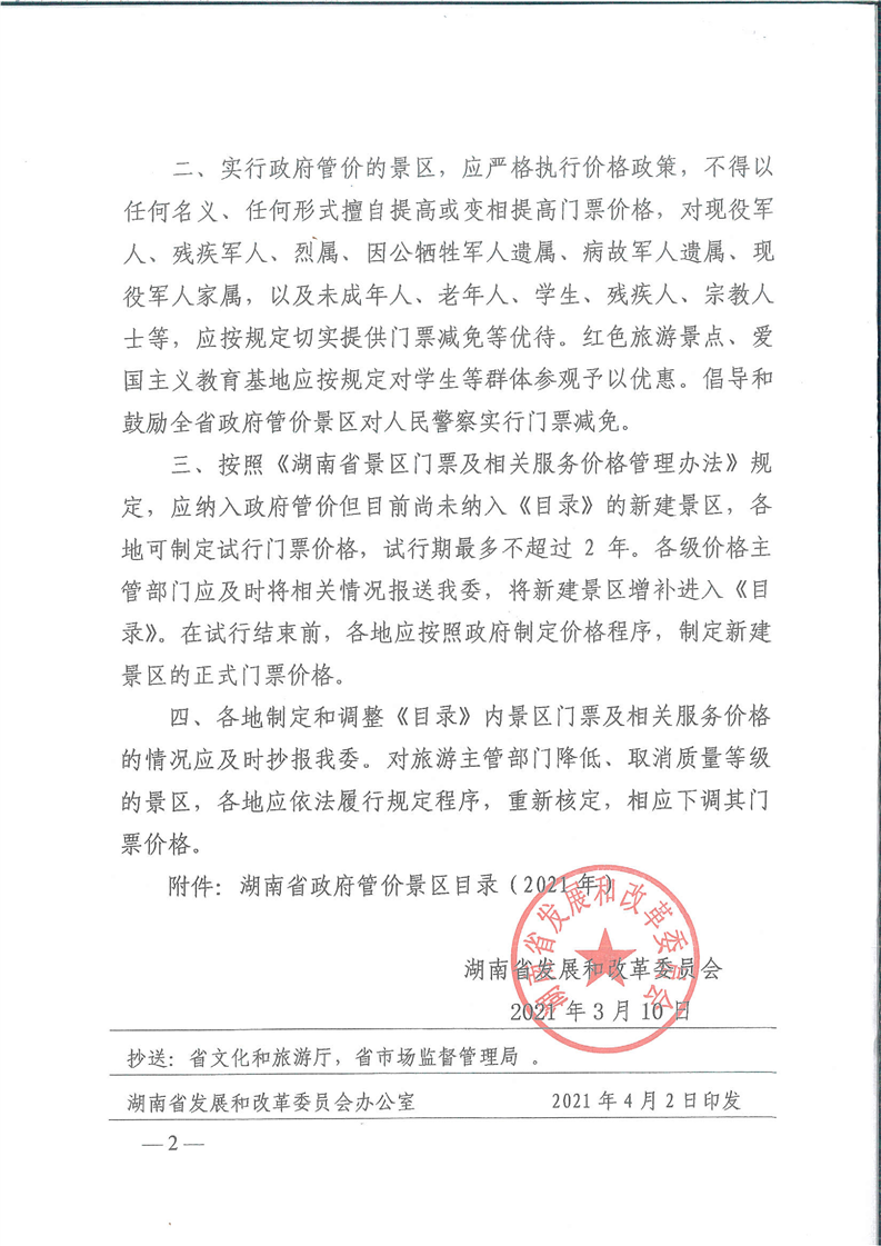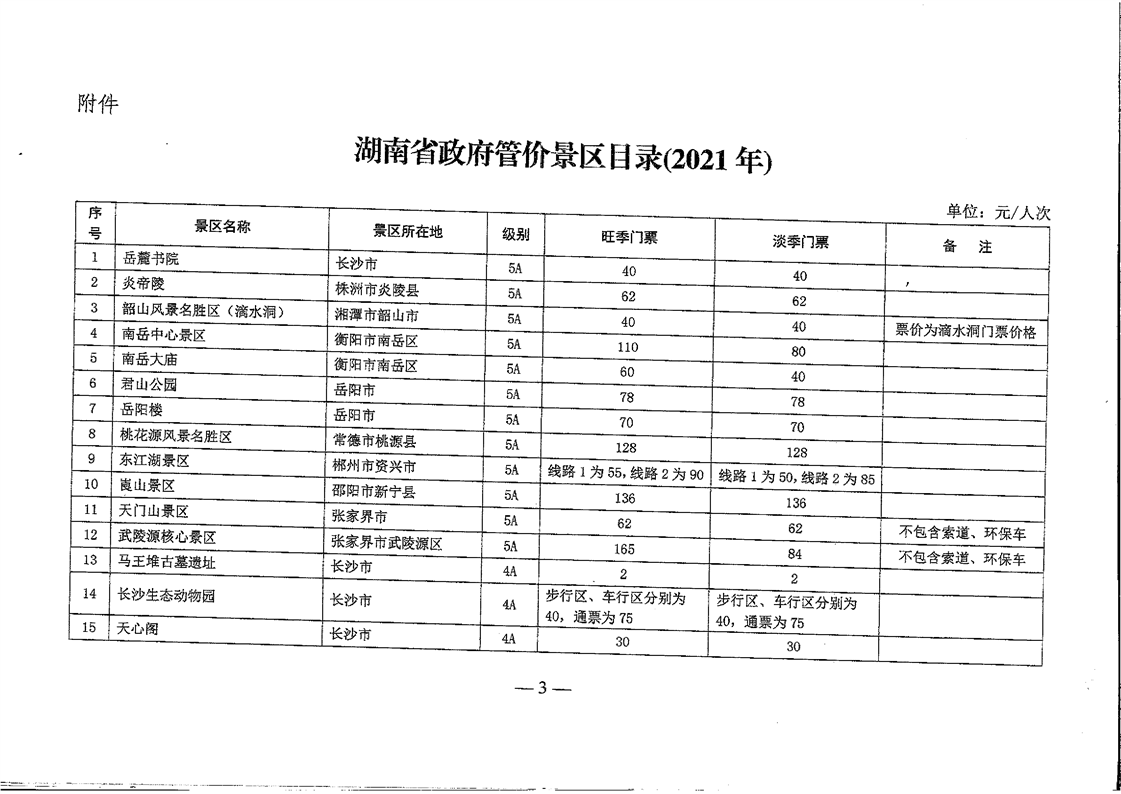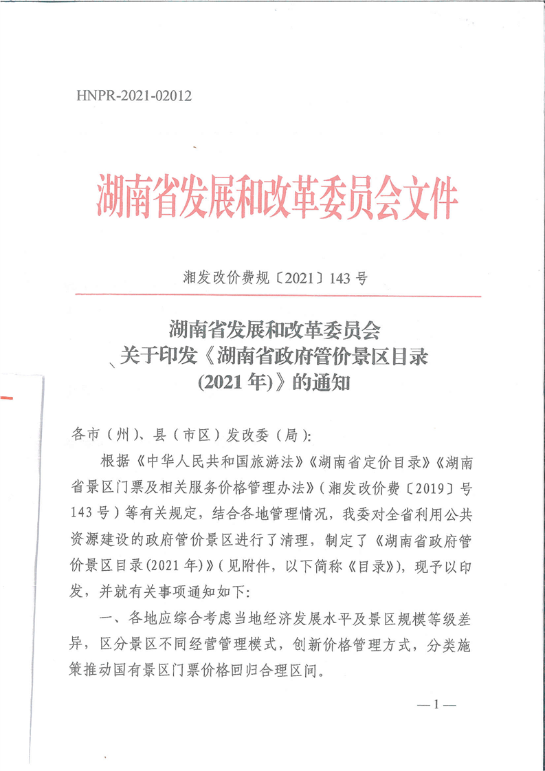 湖南省发展和改革委员会关于印发《湖南省政府管价景区目录(2021年)》的通知