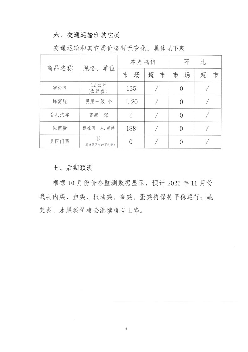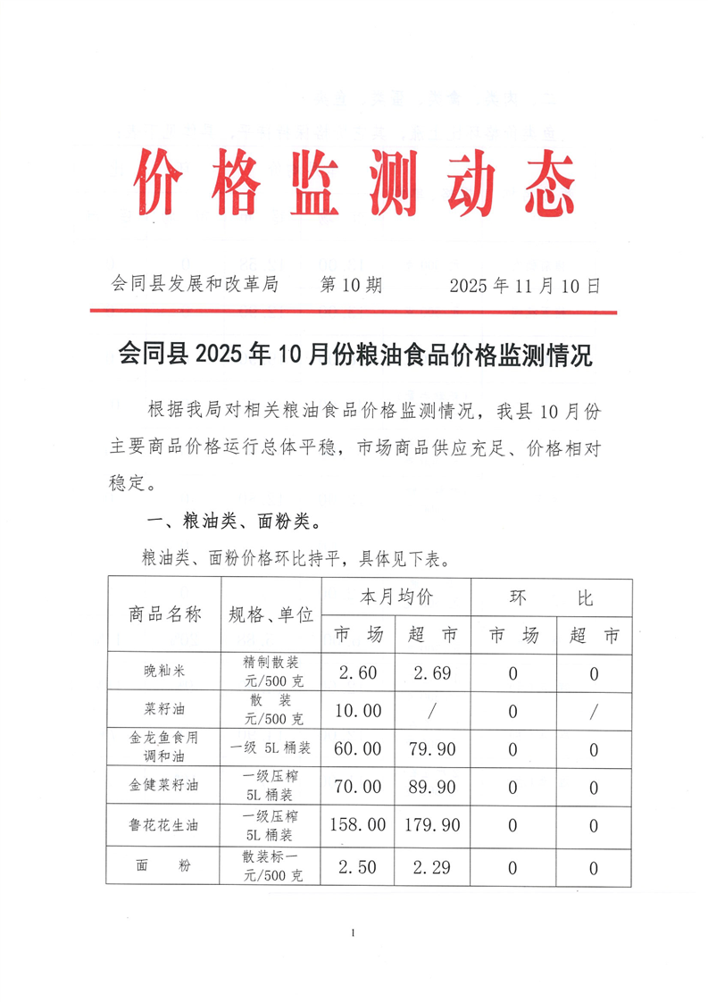 会同县2025年10月份粮油食品价格监测情况