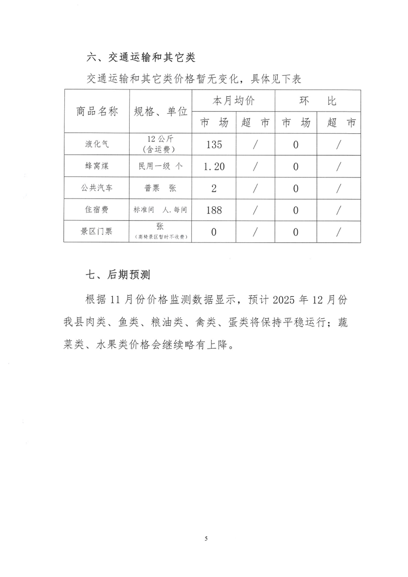 会同县2025年11月份粮油食品价格监测情况