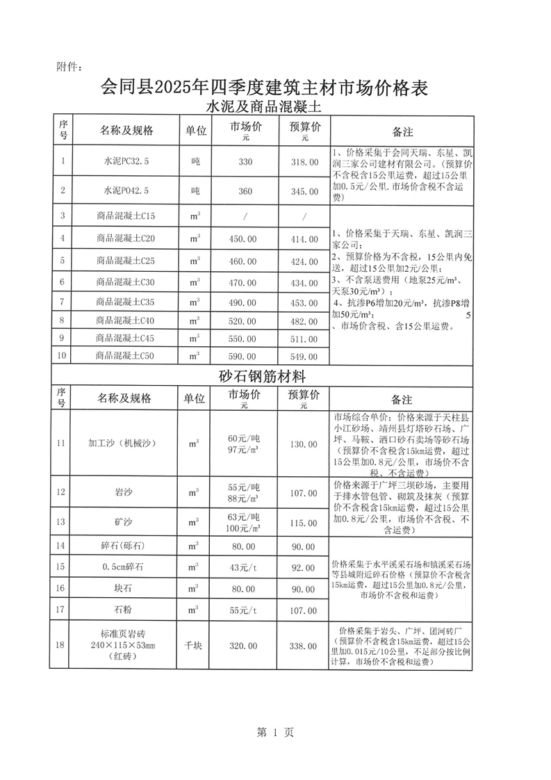 关于发布会同县2025年四季度建筑主材市场价格的通知