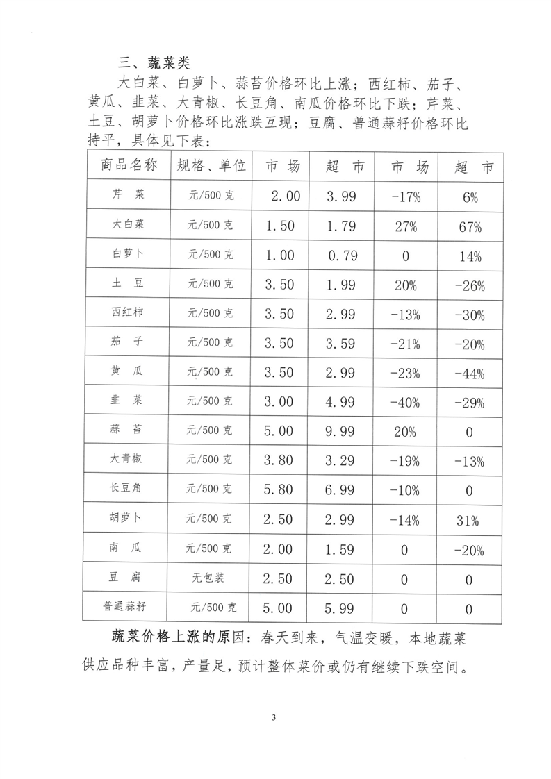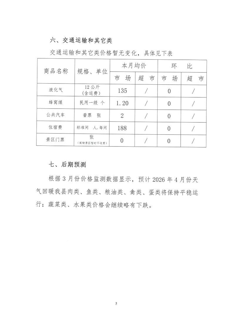 会同县2026年3月份粮油食品价格监测情况