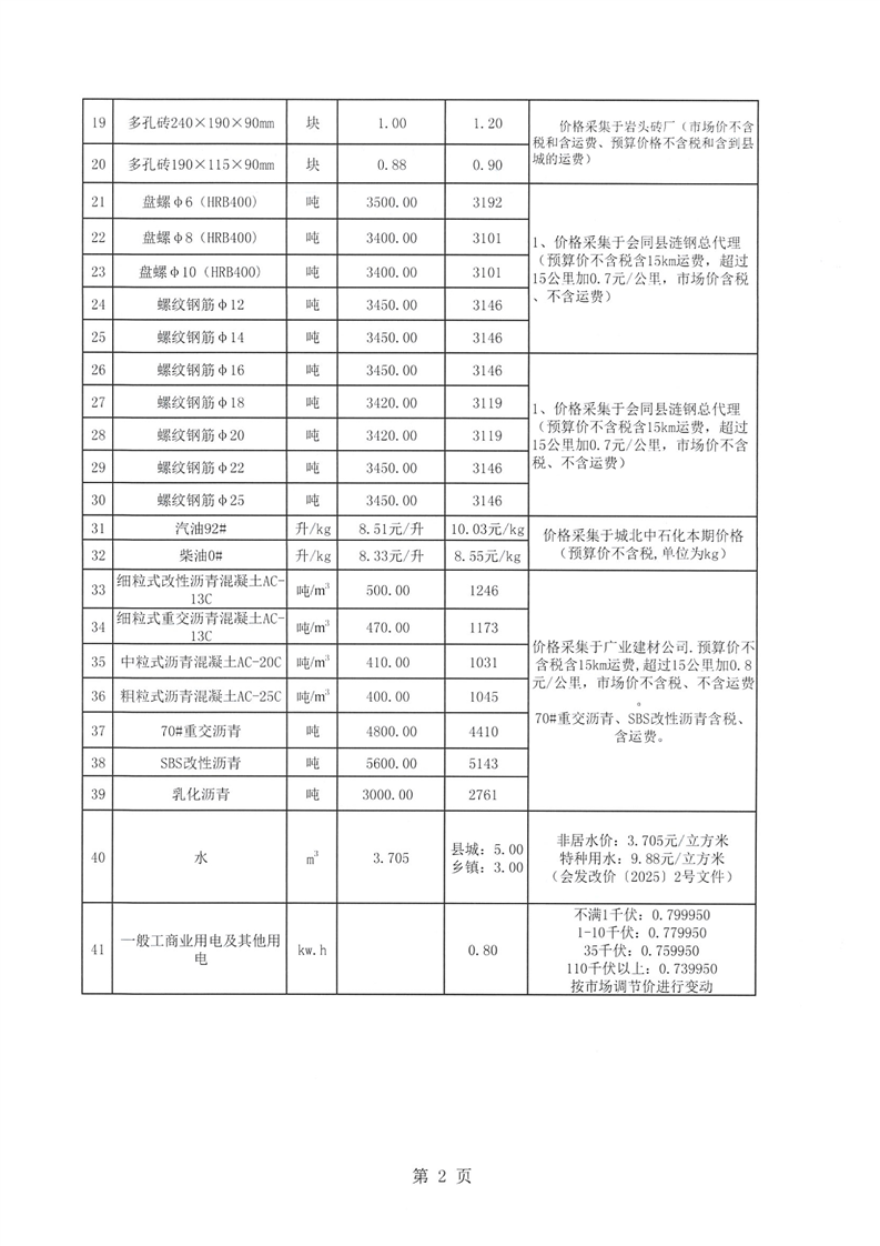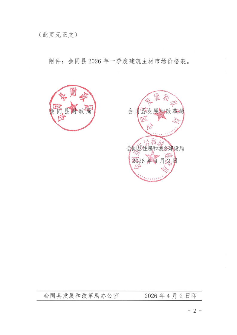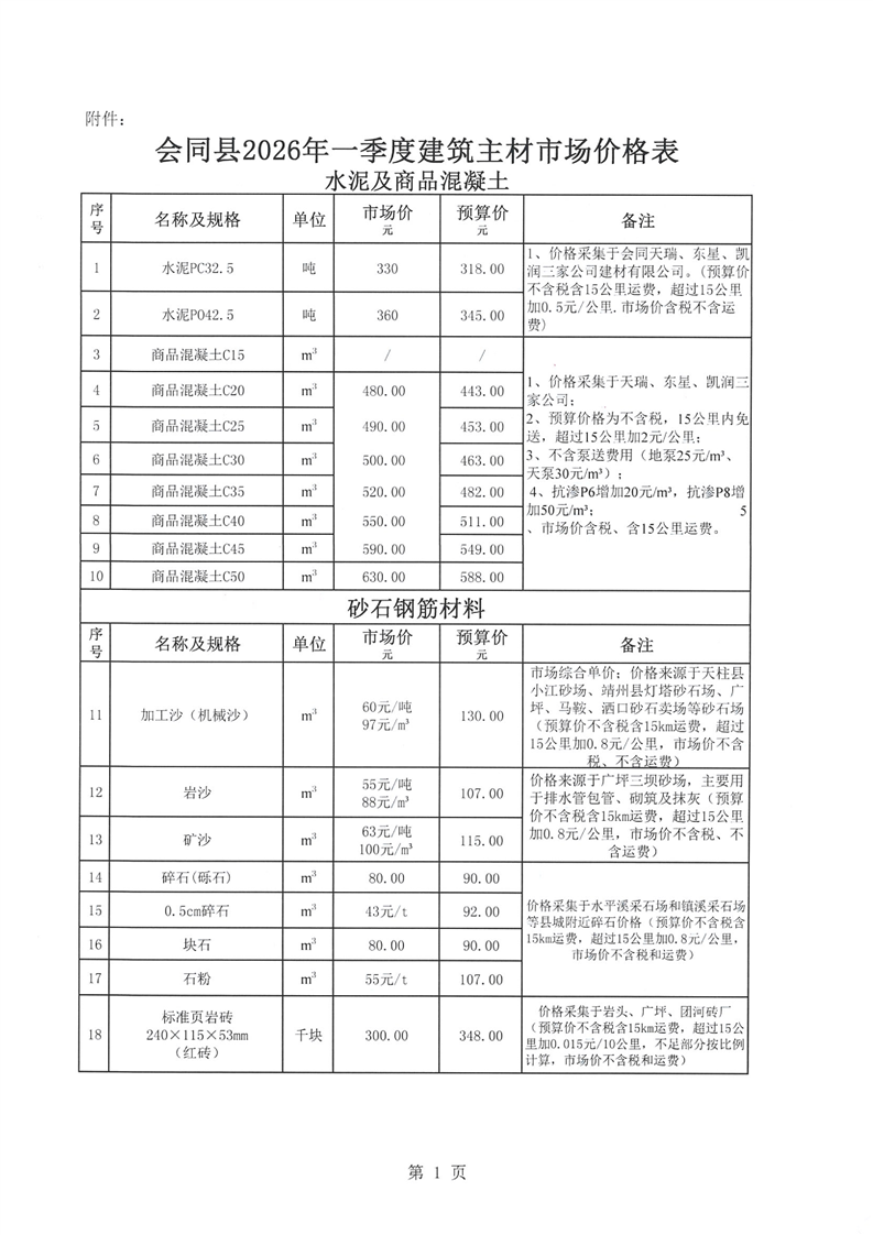 关于发布会同县2026年一季度建筑主材市场价格的通知