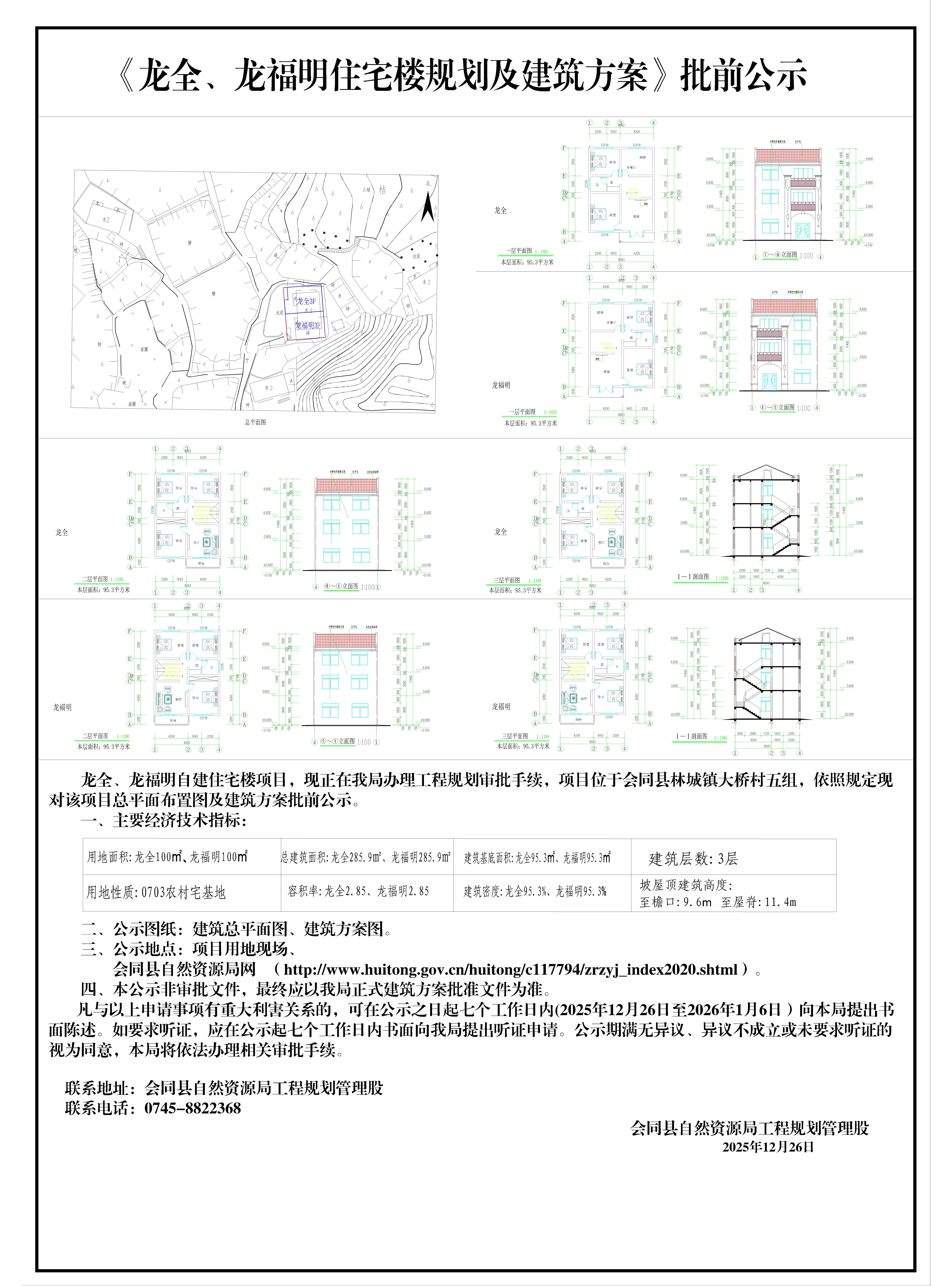 《龙全、龙福明住宅楼规划及建筑方案》批前公示