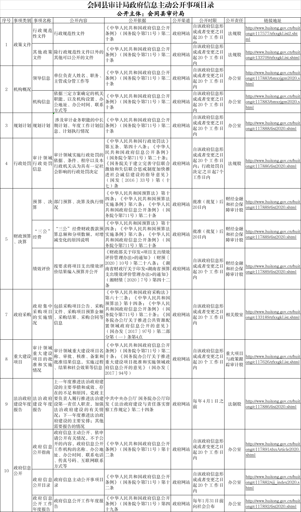 会同县审计局政府信息主动公开事项目录