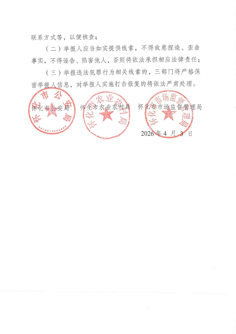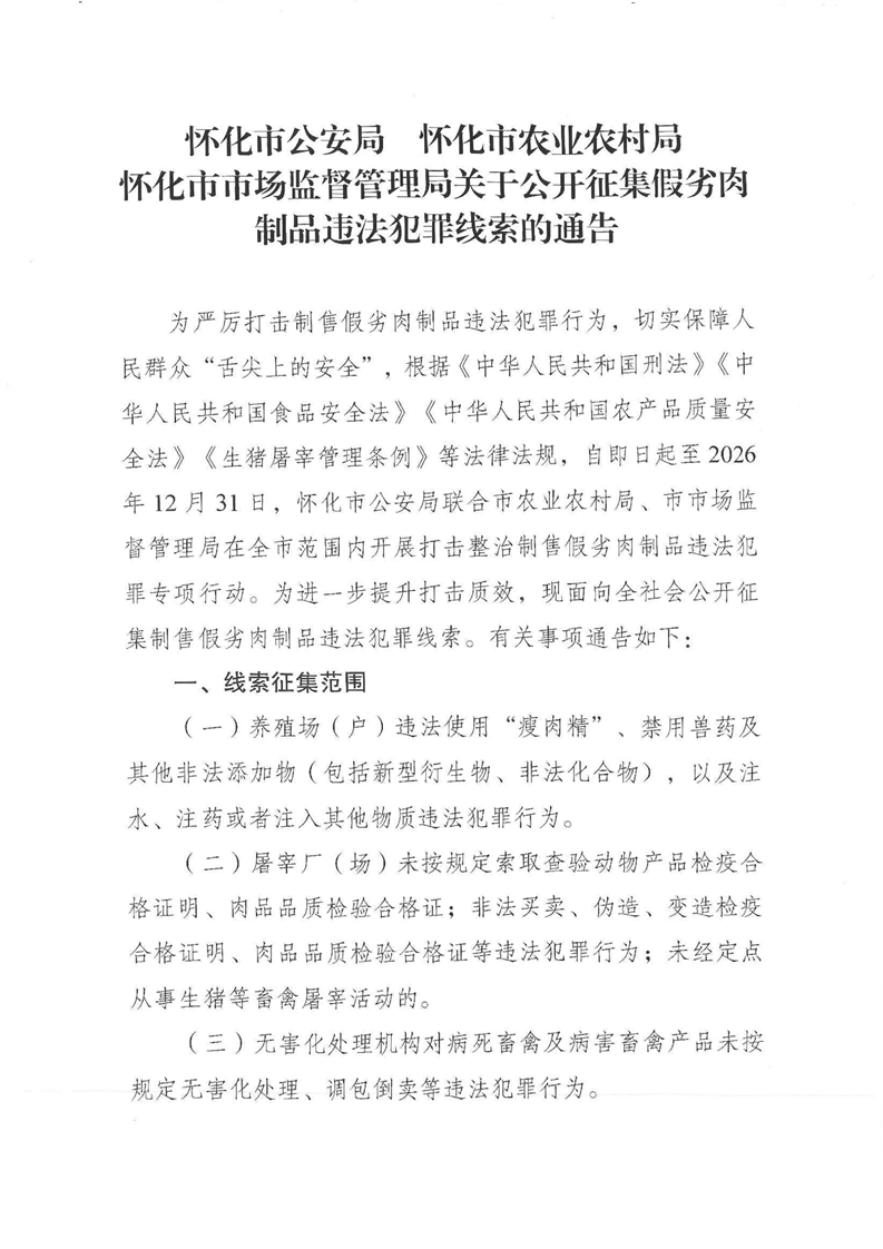 转发:怀化市公安局 怀化市农业农村局怀化市市场监督管理局关于公开征集假劣肉制品违法犯罪线索的通告