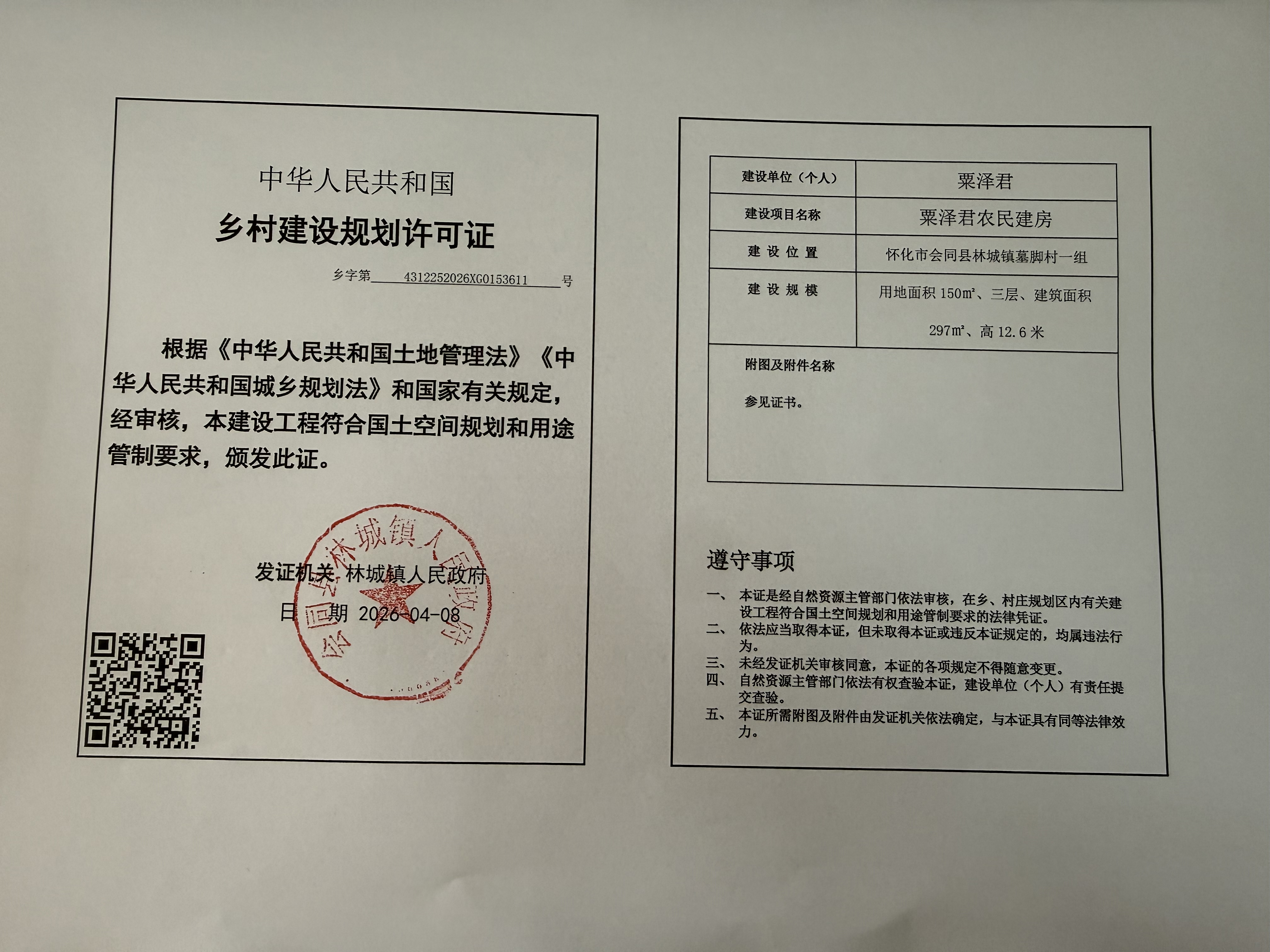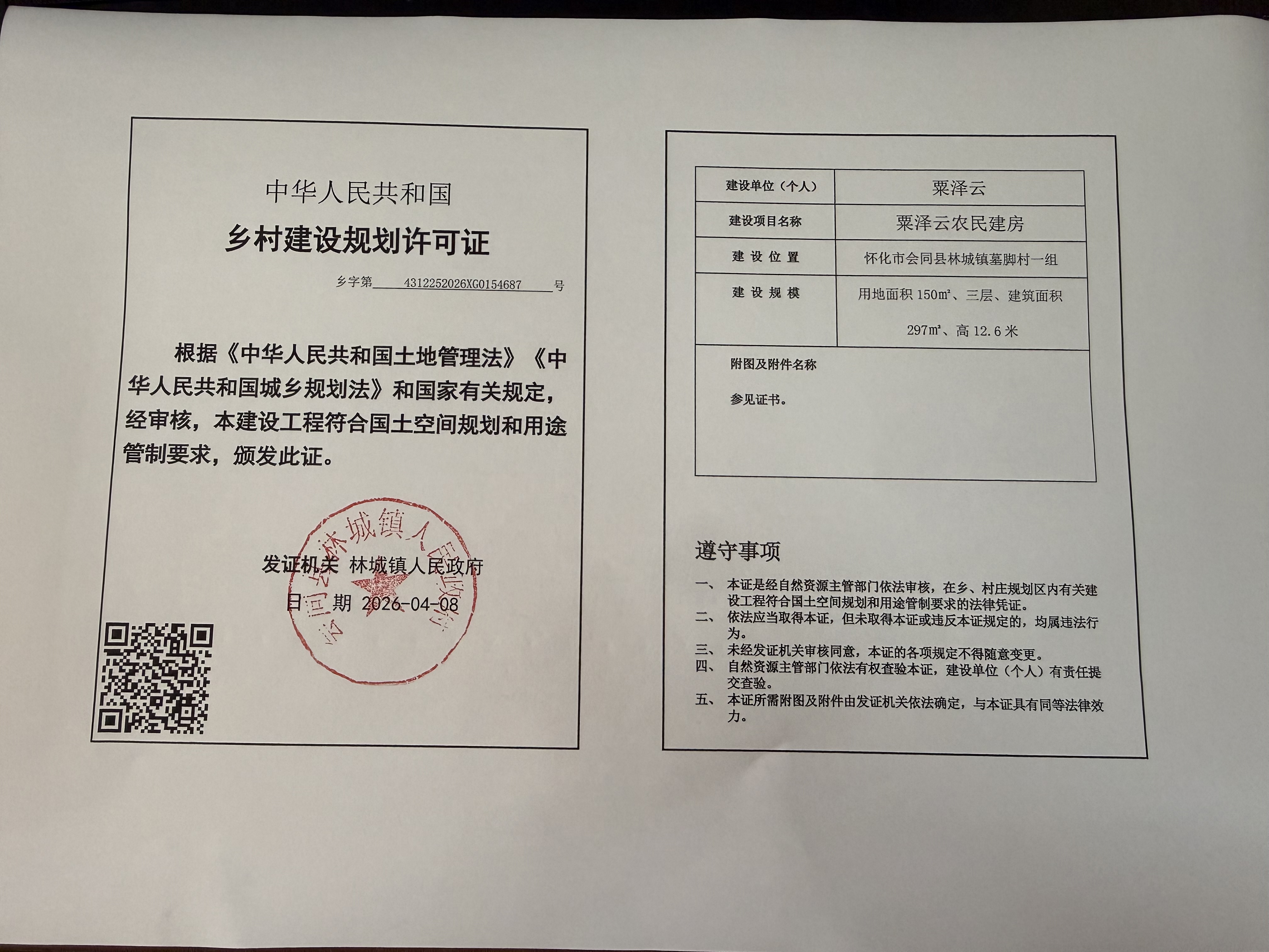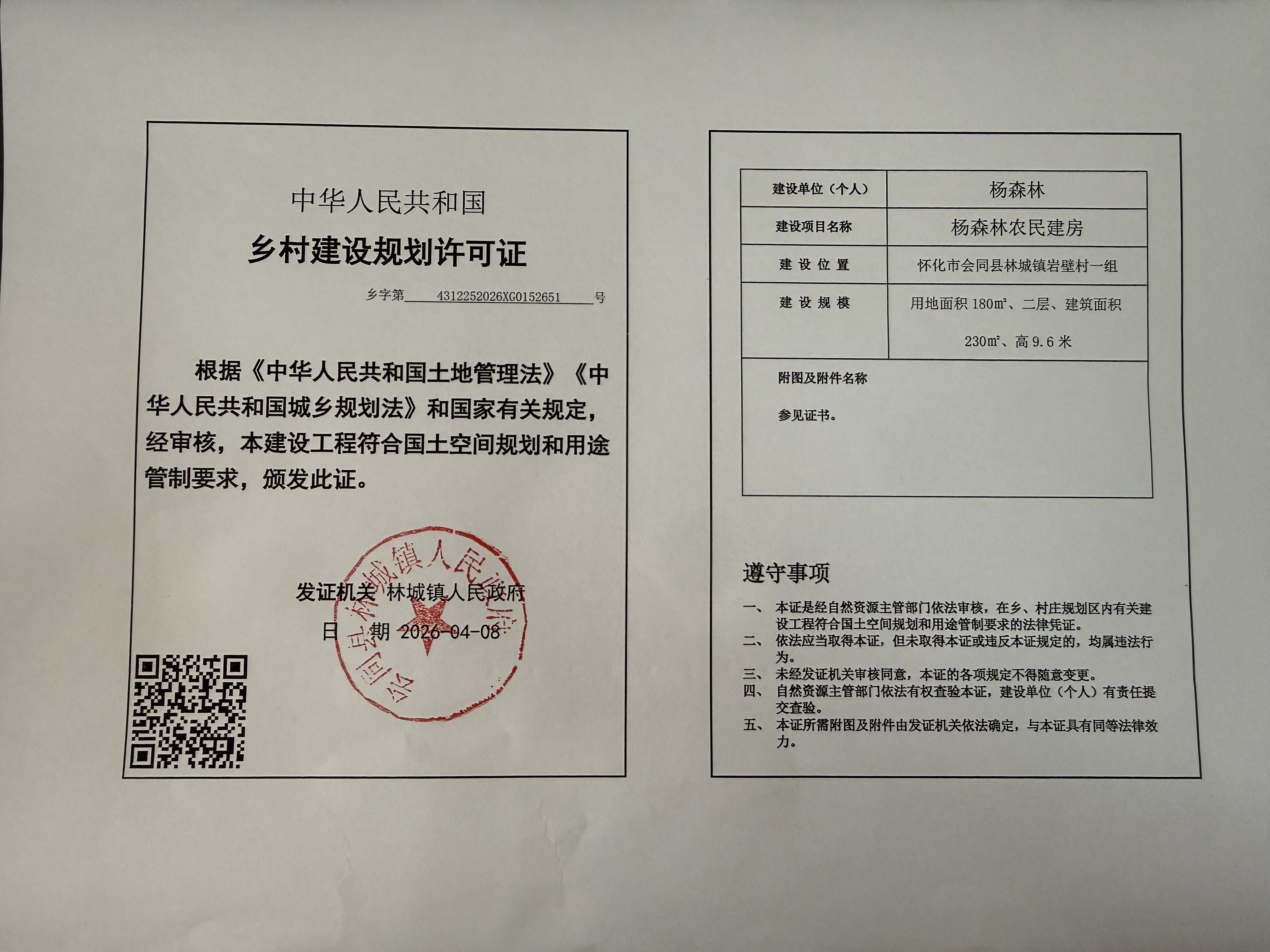 关于林城镇岩壁村杨森林等人乡村建设规划许可证