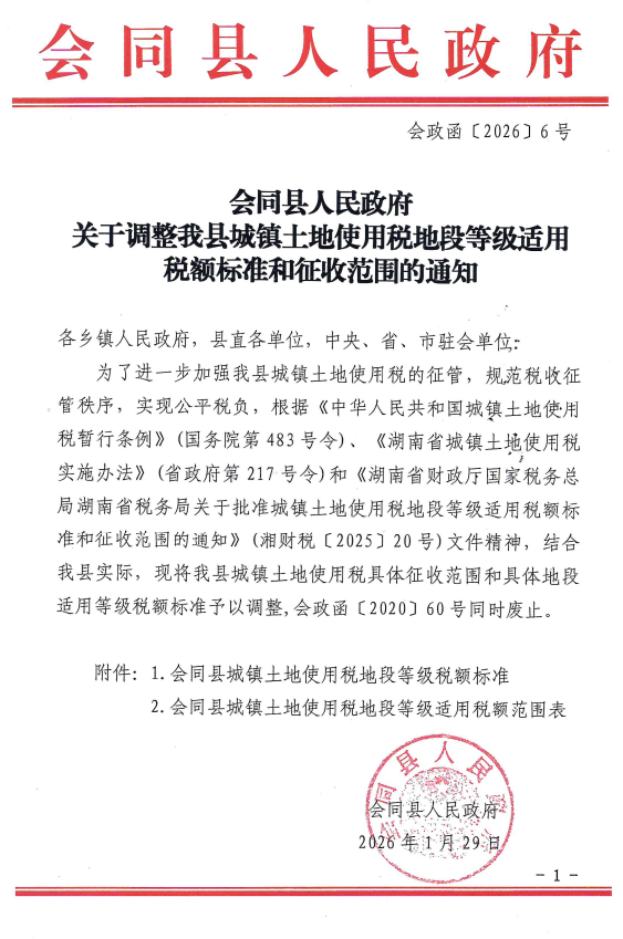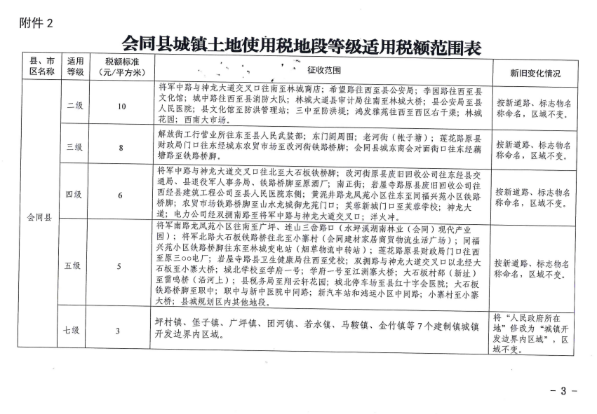 转发会同县人民政府关于调整我县城镇土地使用税地段等级适用税额标准和征收范围的通知