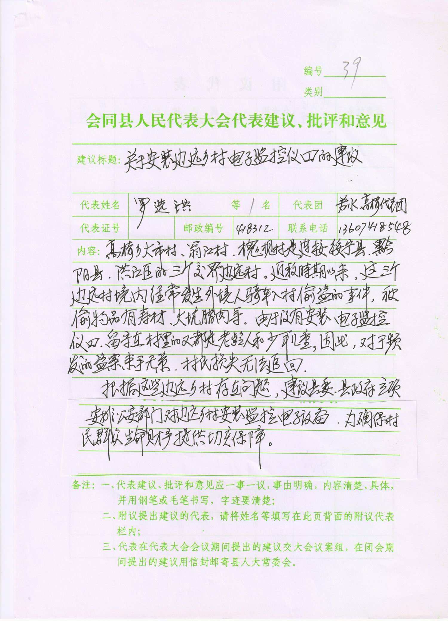 第-39-号建议《关于在边远乡村安装电子监控设备的建议》