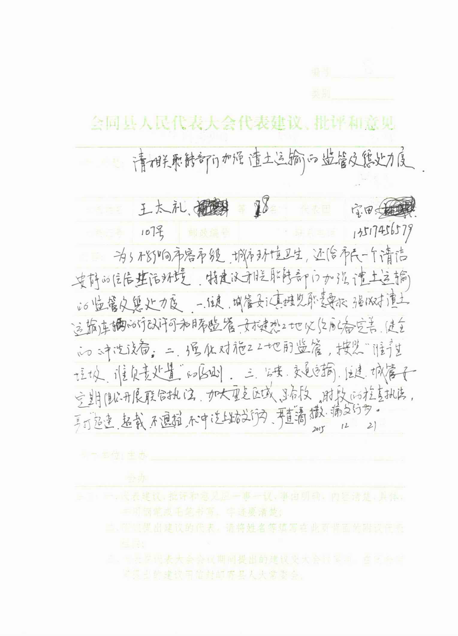 第-8-号建议《关于加强渣土运输监管及惩处力度的建议》
