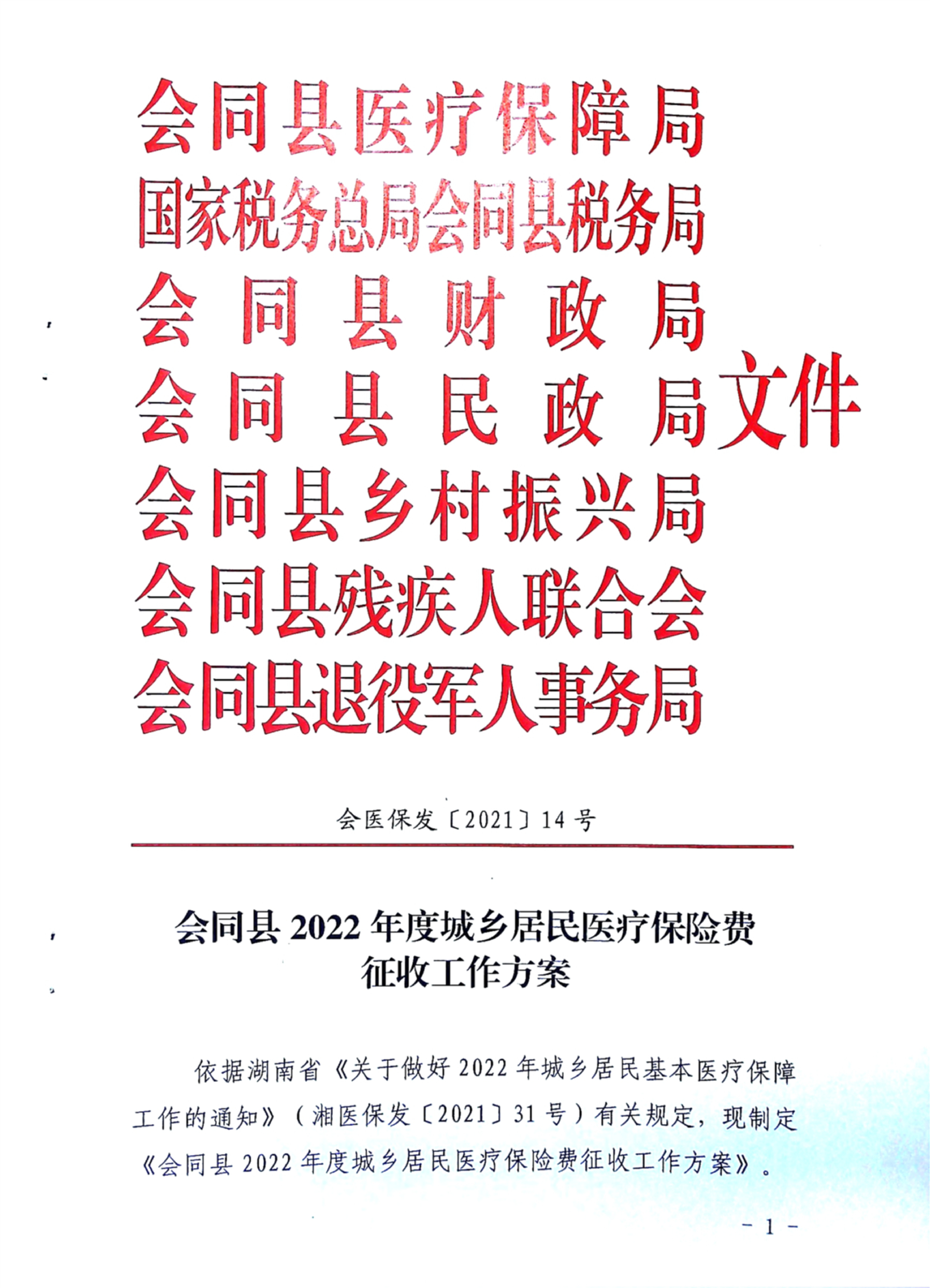 会同县2022年度城乡居民医疗保险费征收工作方案