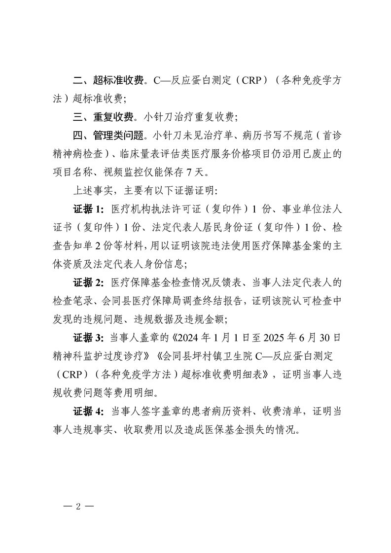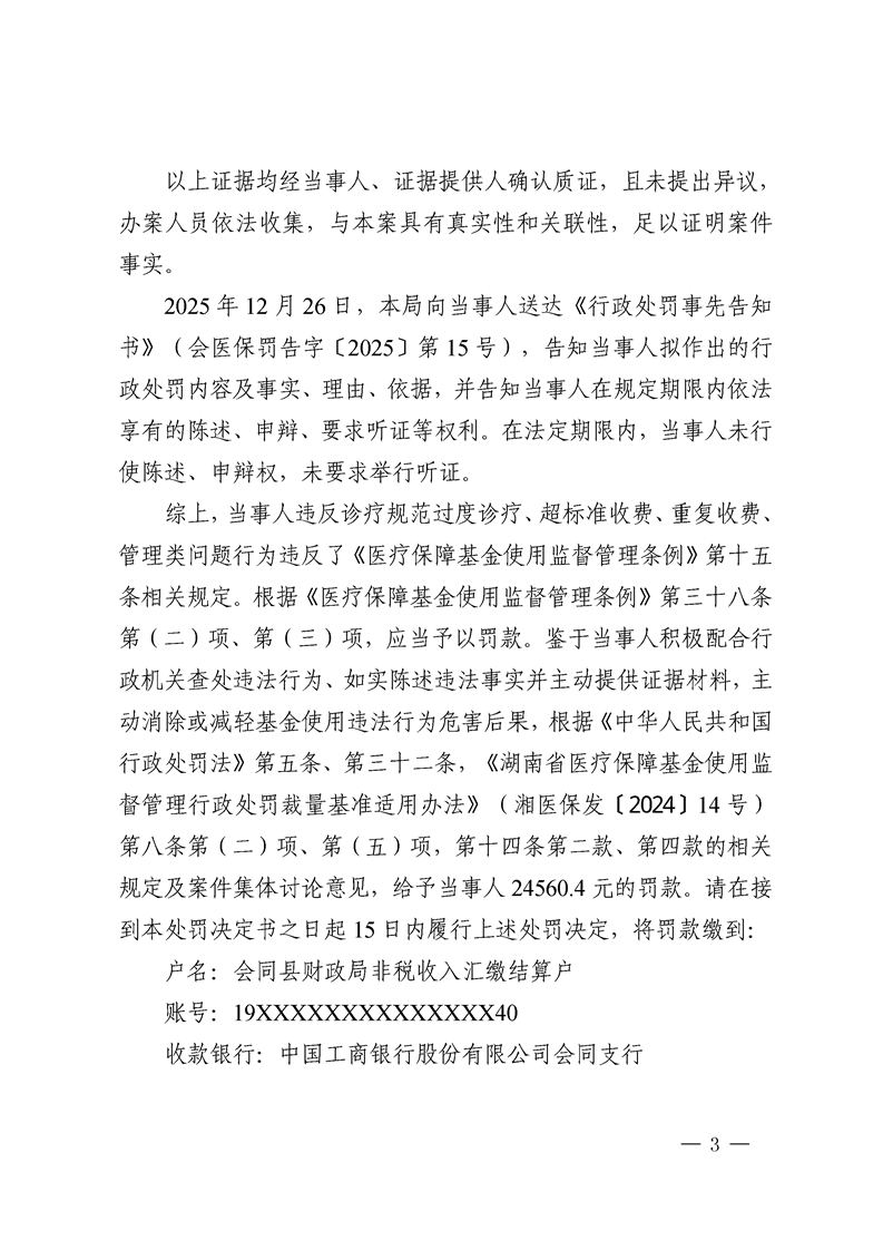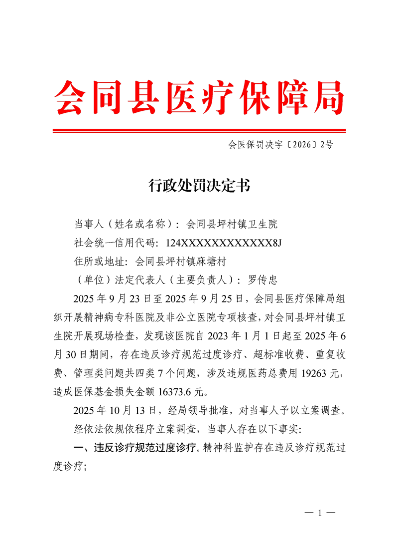 会同县坪村镇卫生院行政处罚决定书