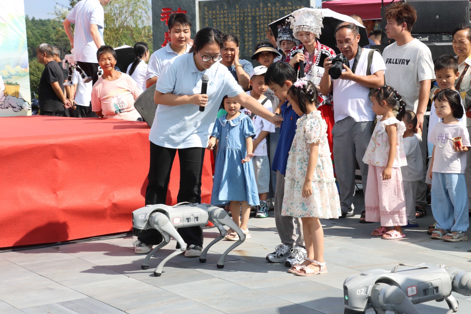 课程展示及节目表演阶段,学生与老师们分别带来了精彩的表演,市科技馆的科普小分队还在现场给大家带来了前沿科技和科学实验展演。首先登场的是一群“智慧担当”——机器人,它们不仅能迈着整齐的步伐舞动,还能完成各种复杂任务;紧随其后的,还有“萌系代表”——机器狗,它们跑跳灵活、反应敏捷、萌趣可爱。观众们纷纷拿出手机记录这科学奇妙时刻。“内燃机的奥秘——雷霆之手”与“神奇的大象牙膏”的科学魔法秀在短短时间里,让现场观众们亲眼看到奇妙变化,感受化学反应带来的震撼与乐趣。