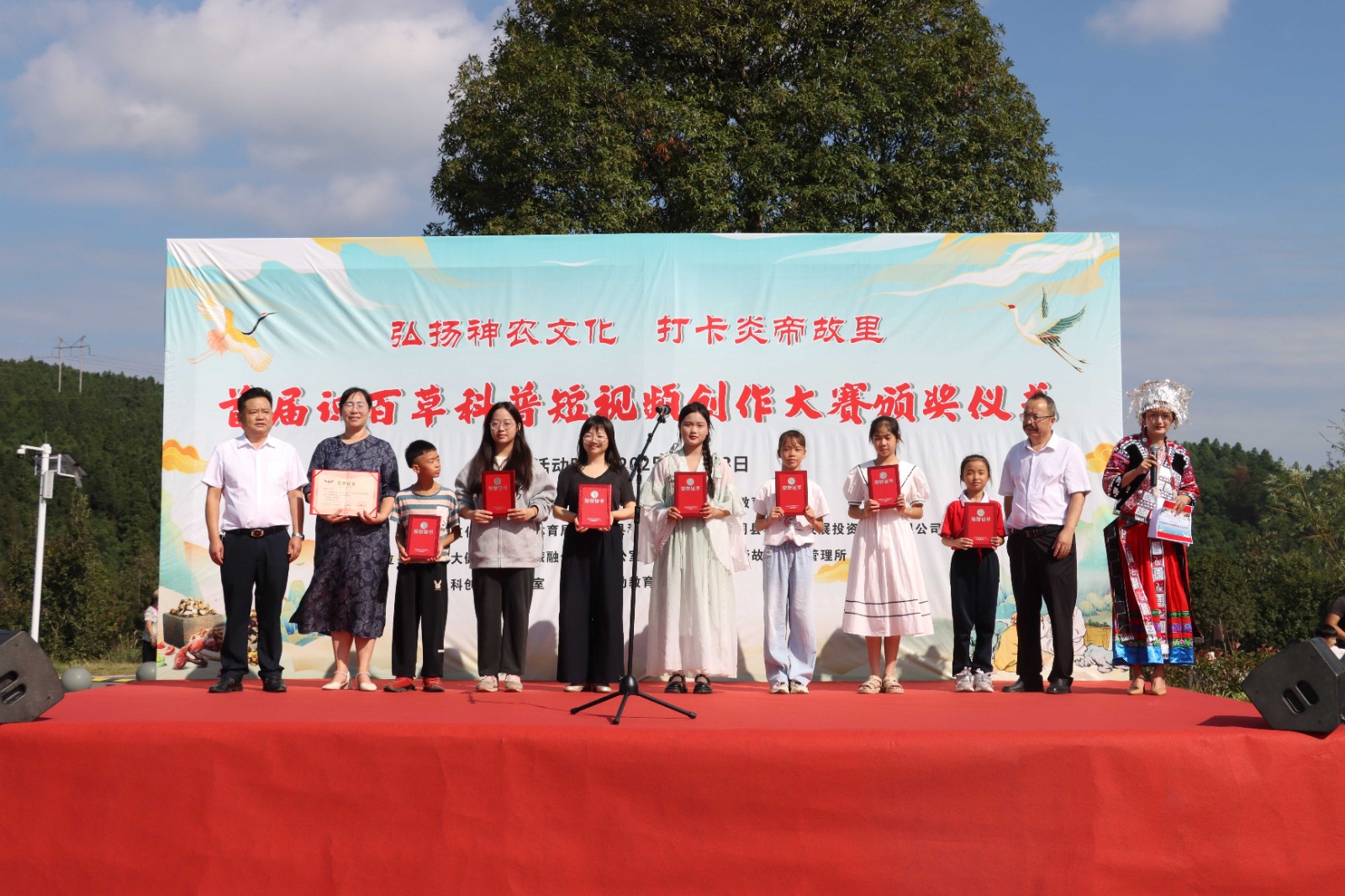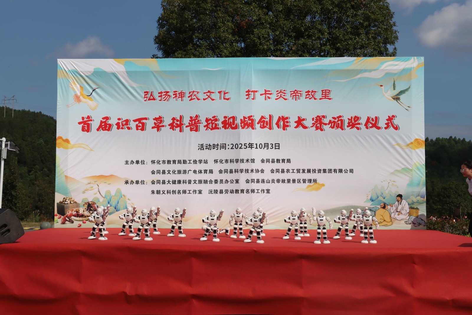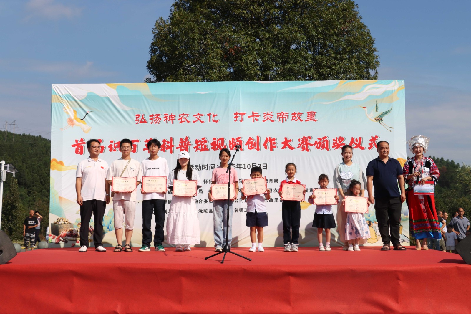 10月3日,会同连山炎帝故里景区的神农本草园热闹非凡,以“弘扬神农文化 打卡炎帝故里”为主题的首届识百草科普短视频创作大赛颁奖仪式在这里举行。怀化市科技馆、会同县教育局、会同县文旅广体局、会同县农工贸投资集团有限公司、会同县科协等相关单位工作人员及老师与学生代表参加活动。