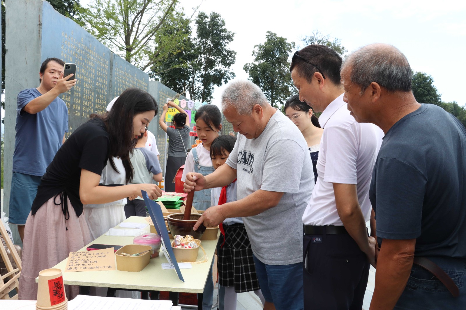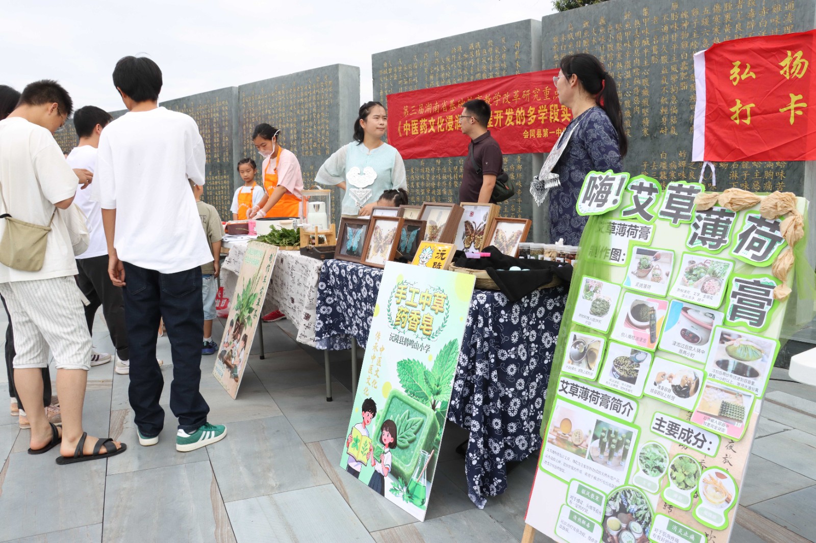 除了上演精彩活动之外,来自朱朝义科创名师工作室的30多位老师将研学课程作为连接课堂与生活、理论与实践的重要桥梁,让知识走出课本,在活动现场设置了草药研磨、中医药手工香皂制作、艾草香囊制作DIY、专家义诊等研学展位,把抽象的中医药知识转化为可触摸、可操作的体验项目,让古老的智慧结晶融入日常生活,让参加活动的人都可以亲身参与其中。