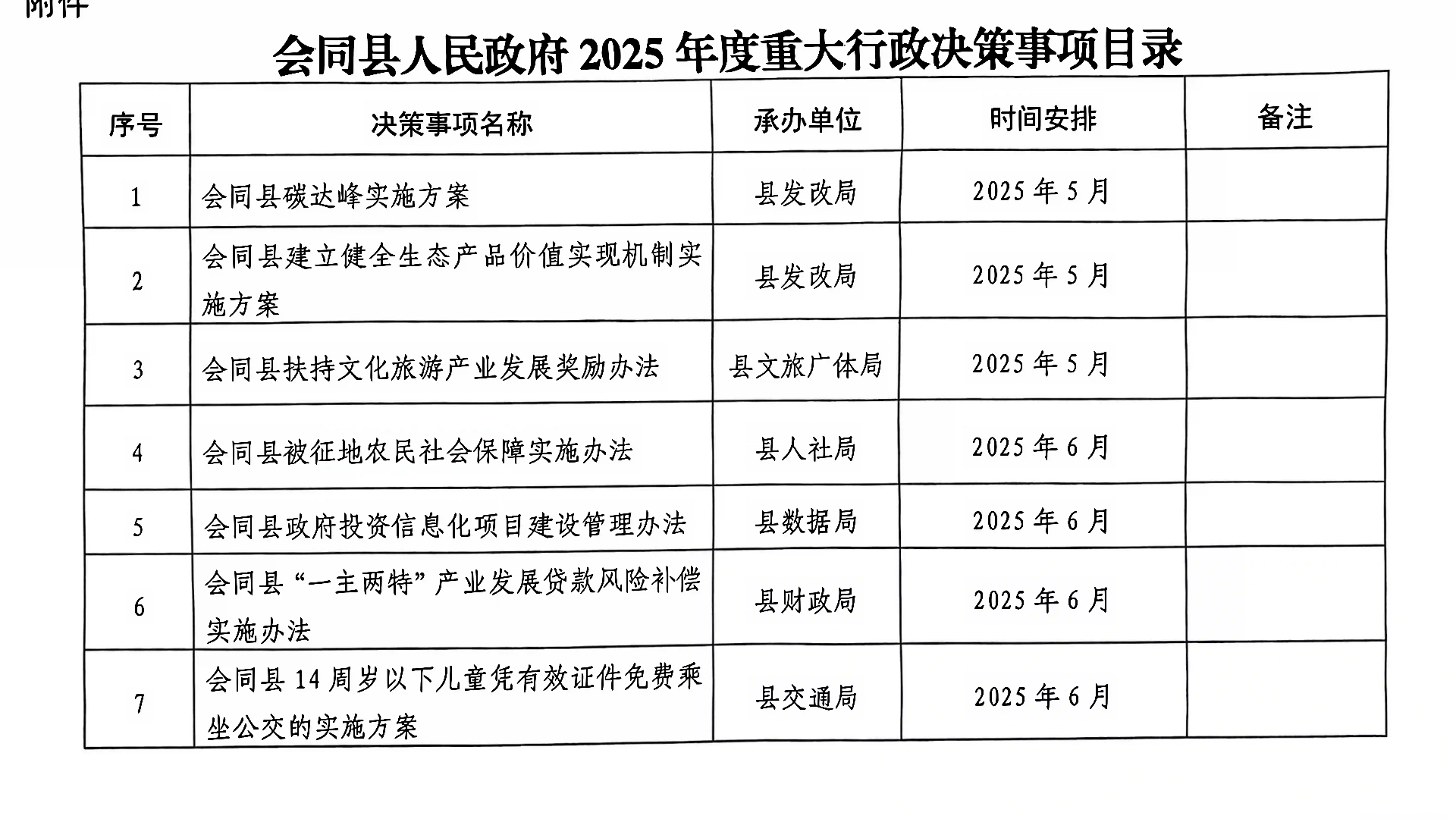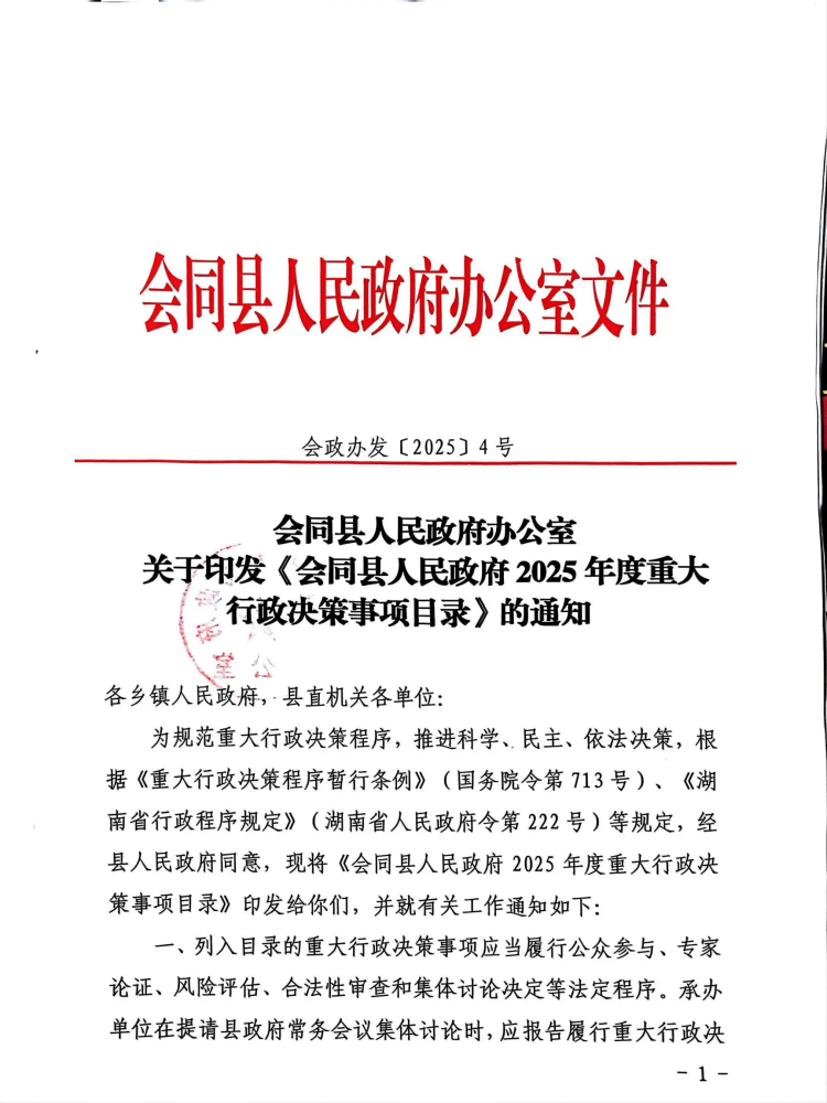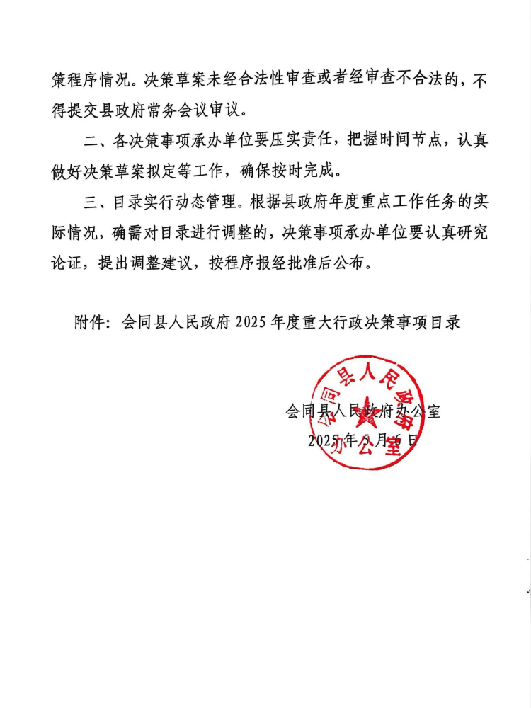 会同县人民政府办公室关于印发《会同县人民政府2025年度重大行政决策事项目录》的通知