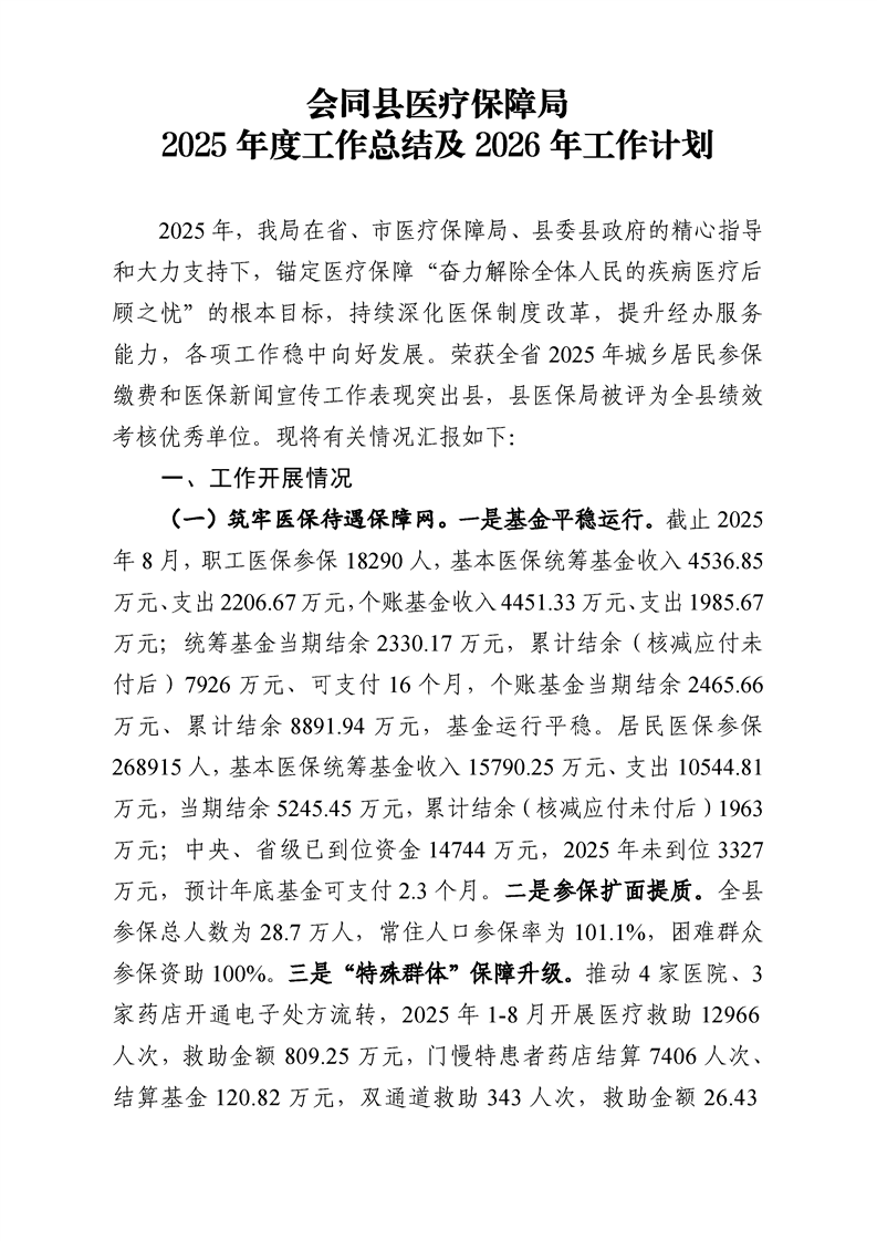 会同县医疗保障局2025年度工作总结及2026年工作计划