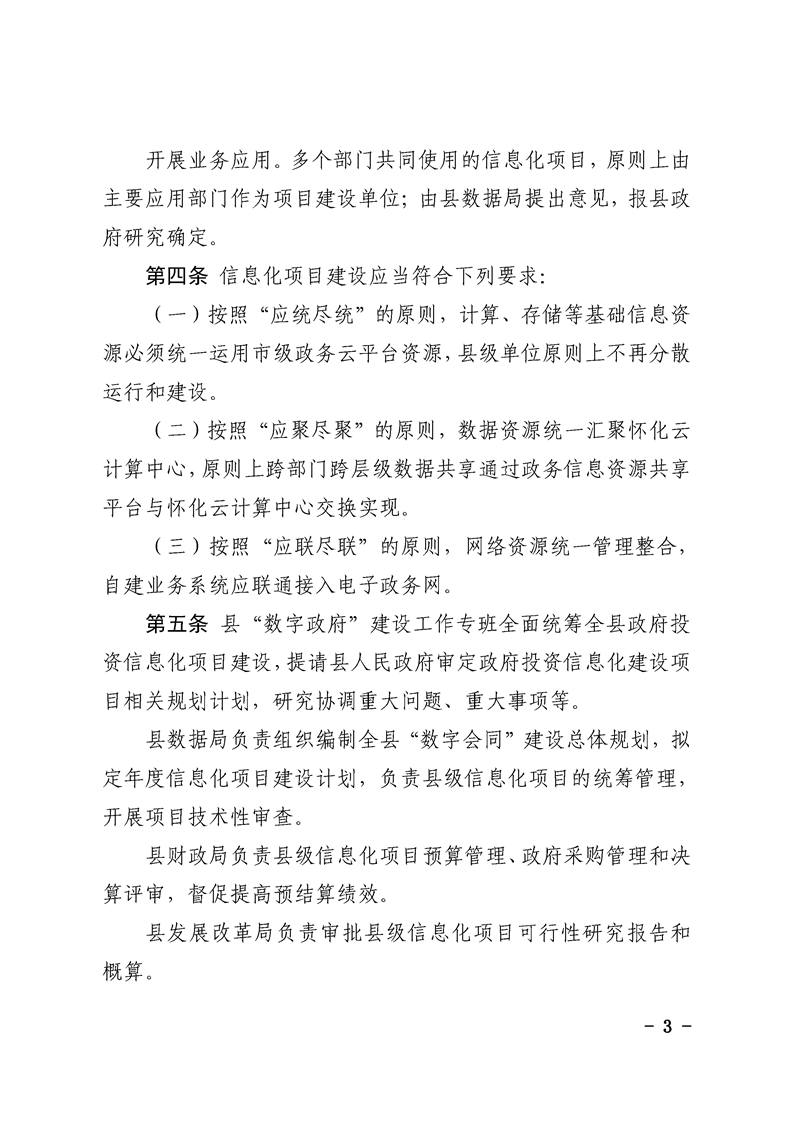 会同县人民政府办公室关于印发《会同县县本级政府投资信息化项目建设管理办法》的通知