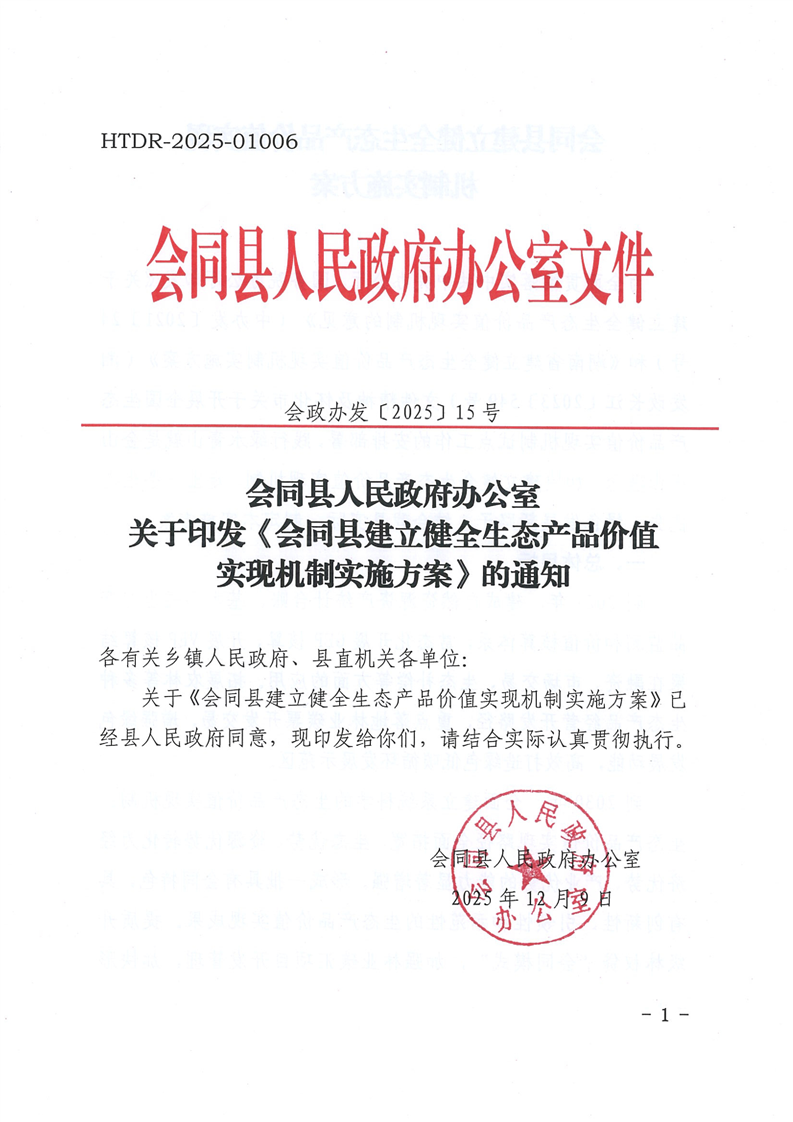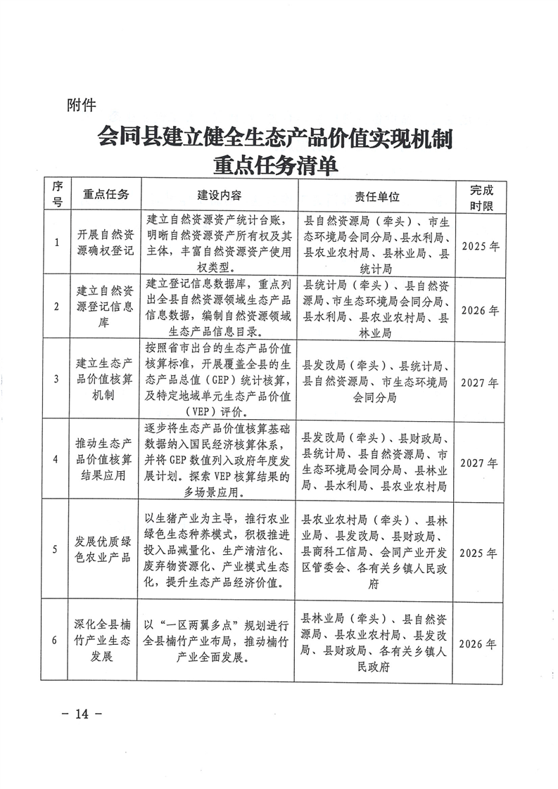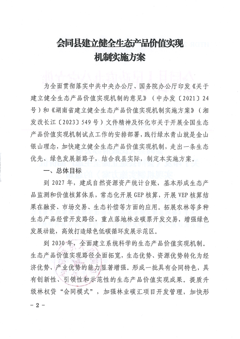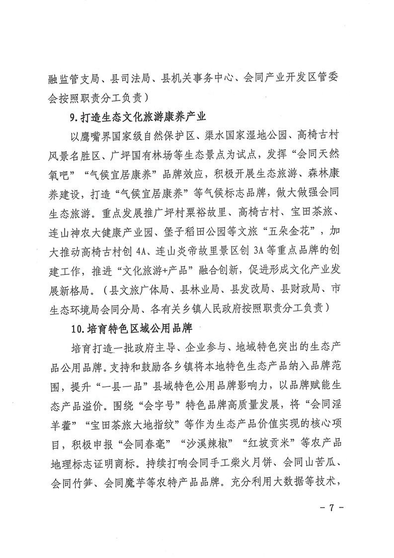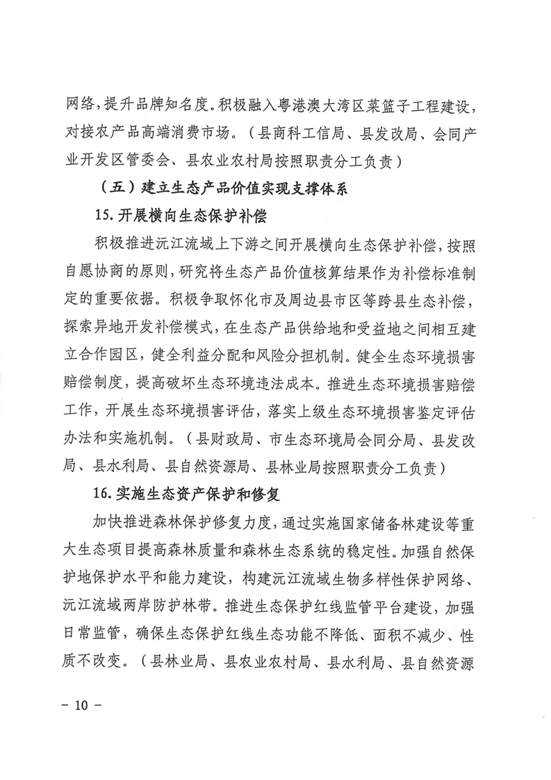 会同县人民政府办公室关于印发《会同县建立健全生态产品价值实现机制实施方案》的通知