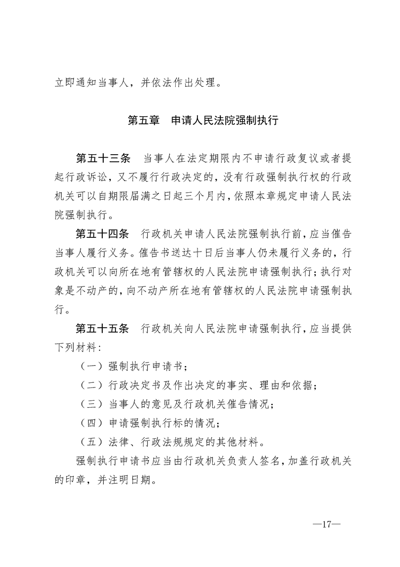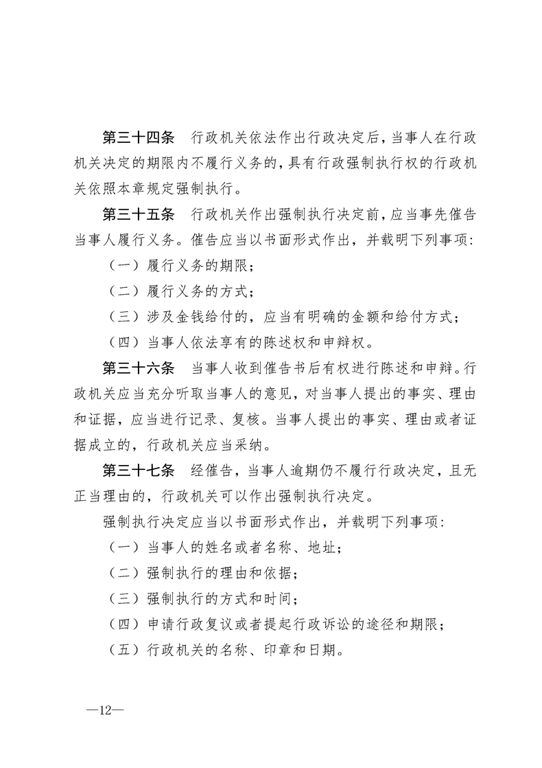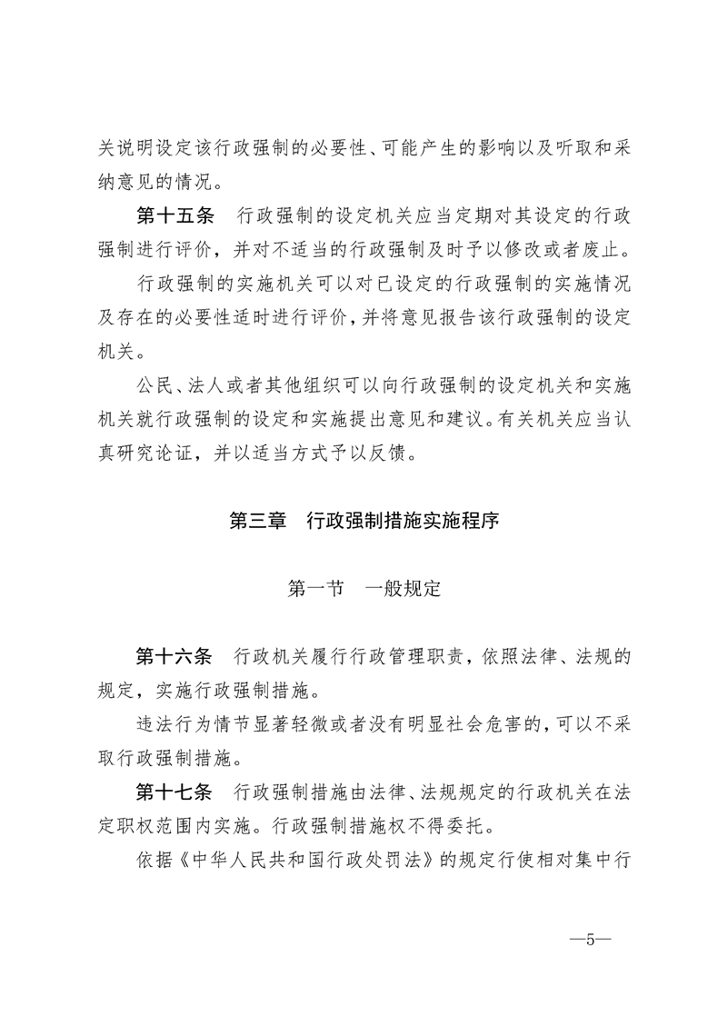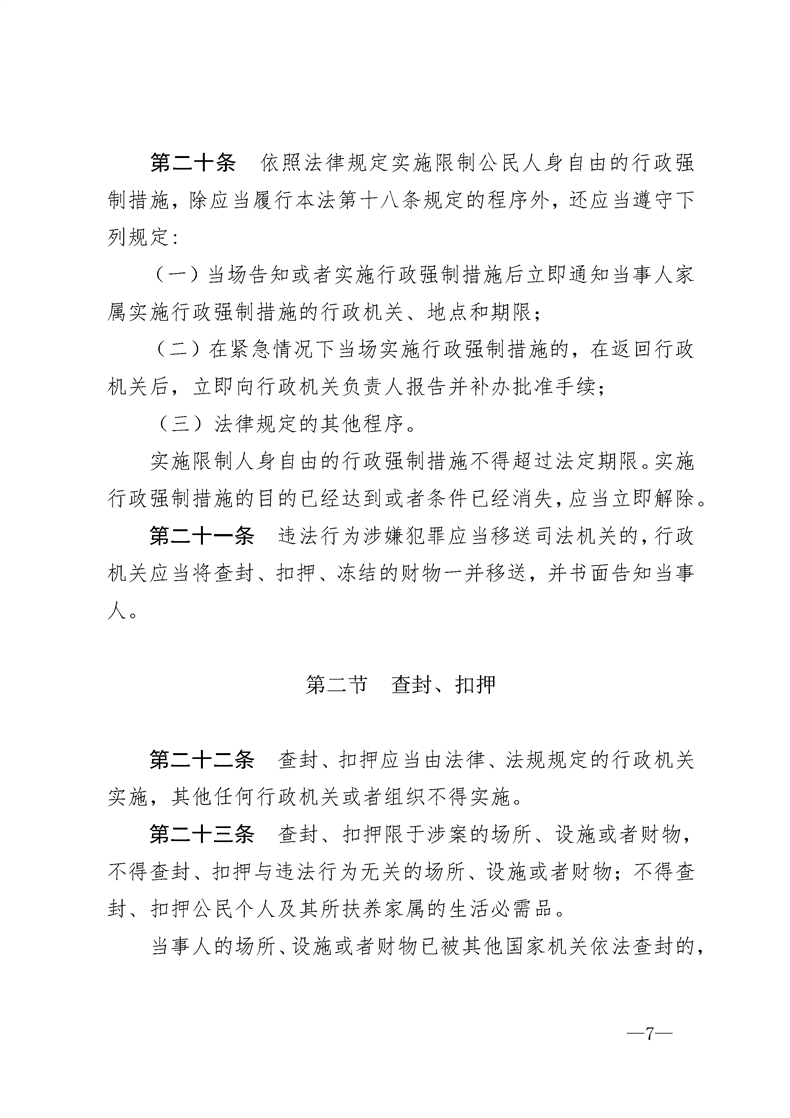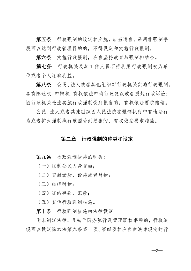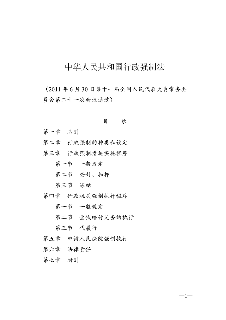 (转发)中华人民共和国行政强制法