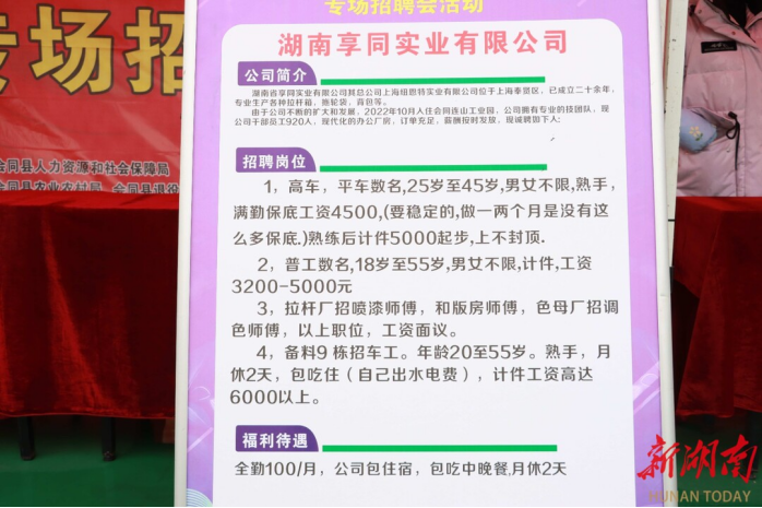湖南日报·新湖南客户端 2月8日讯(通讯员 李洁 )春节假期刚过,招聘热潮席卷而至。为帮助用工单位和广大求职者顺利招工和求职,2月7日上午,会同县2025年服务园区企业“春风行动”专场招聘会在县产业开发区连山工业园区和水坪溪工业园区同步举行,来自该县18个乡镇的求职者参加应聘。
