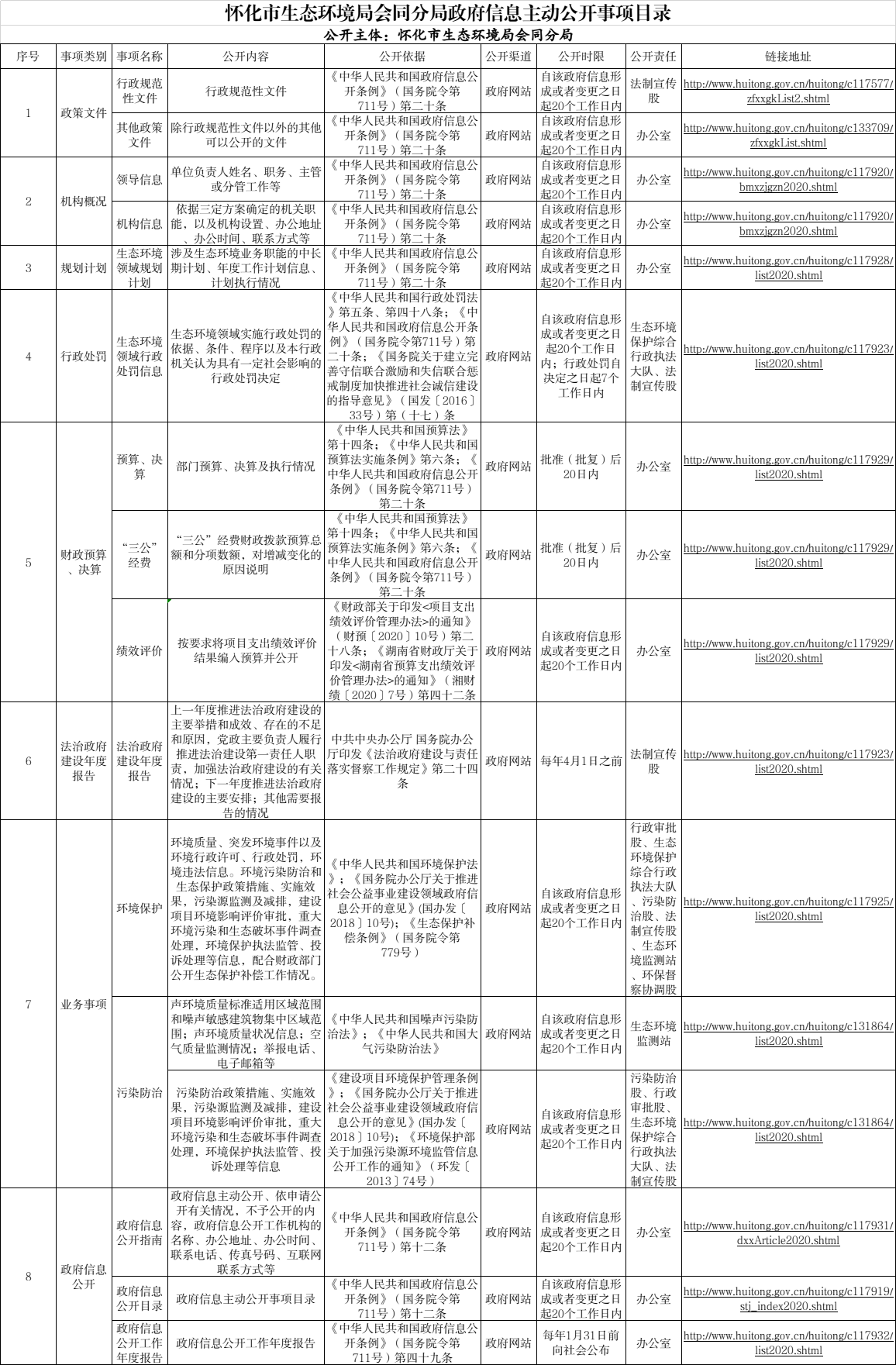 怀化市生态环境局会同分局政府信息主动公开事项目录