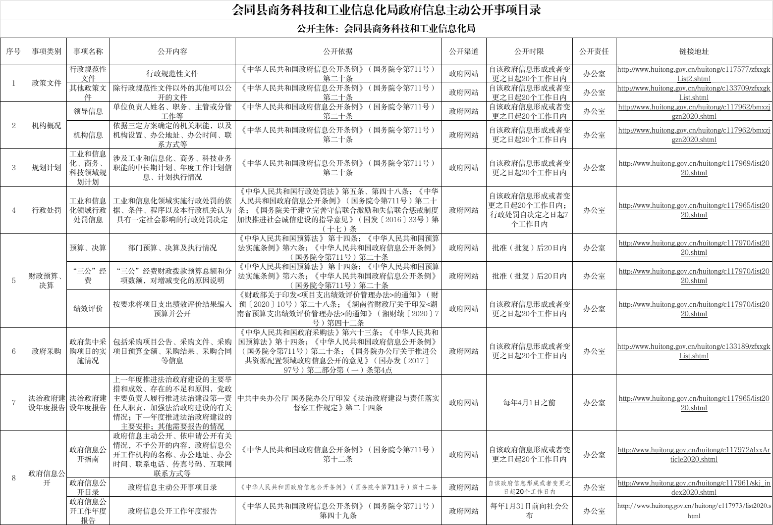 会同县商务科技和工业信息化局政府信息主动公开事项目录