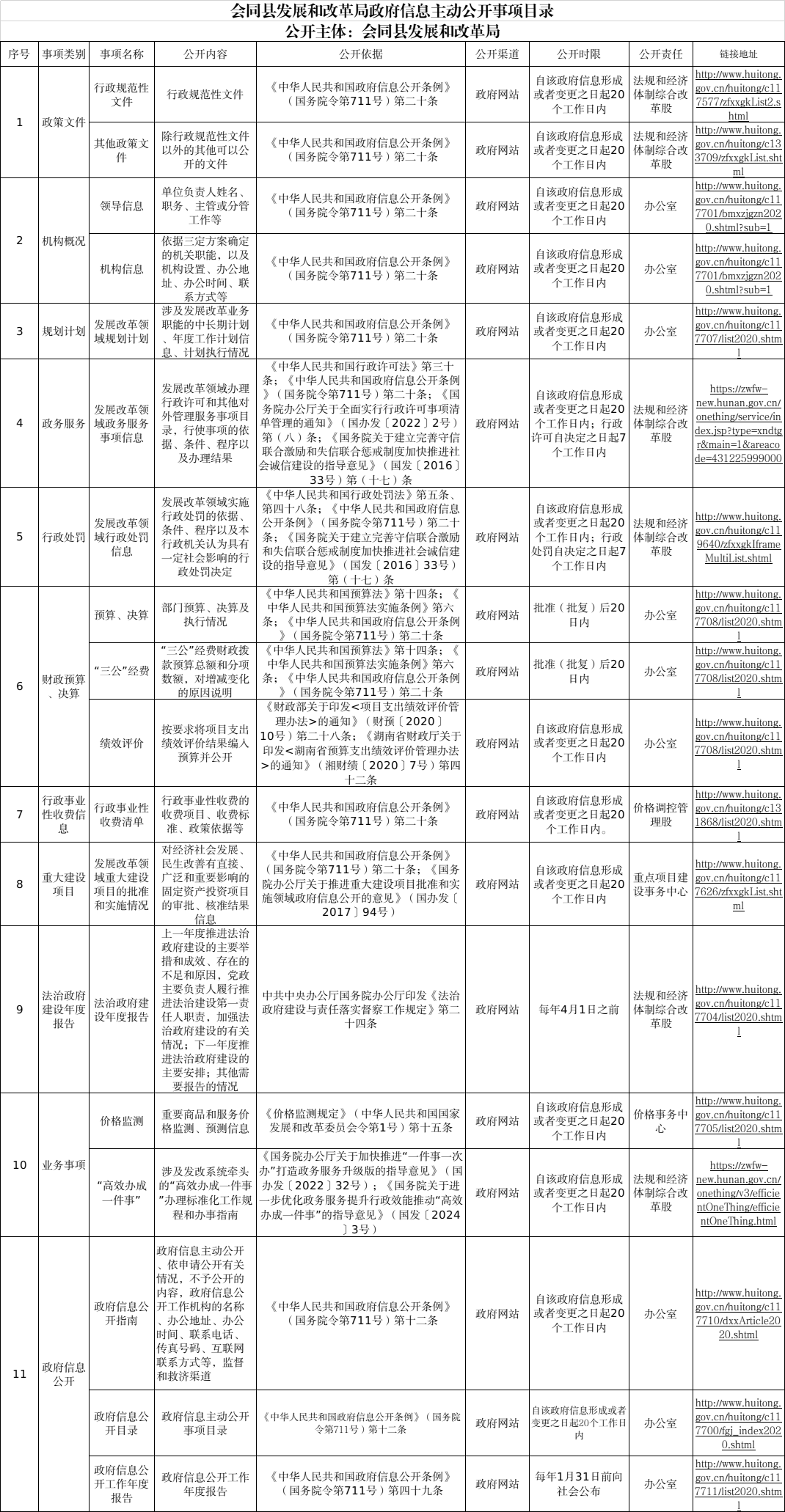会同县发展和改革局政府信息主动公开事项目录