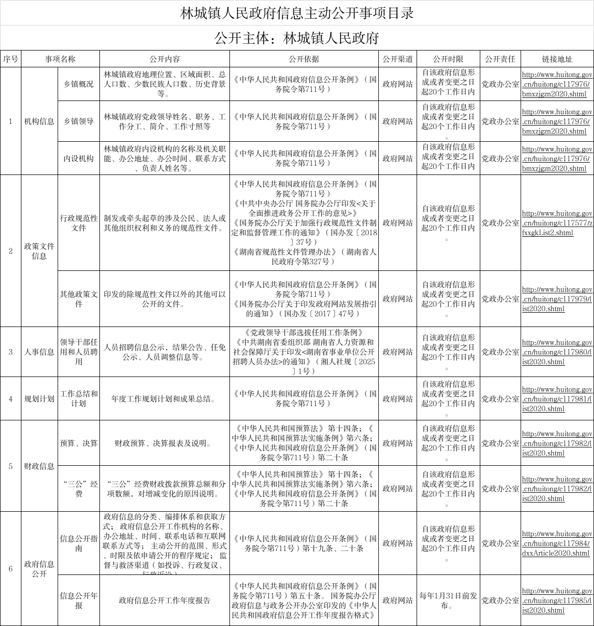 林城镇政府信息主动公开事项目录