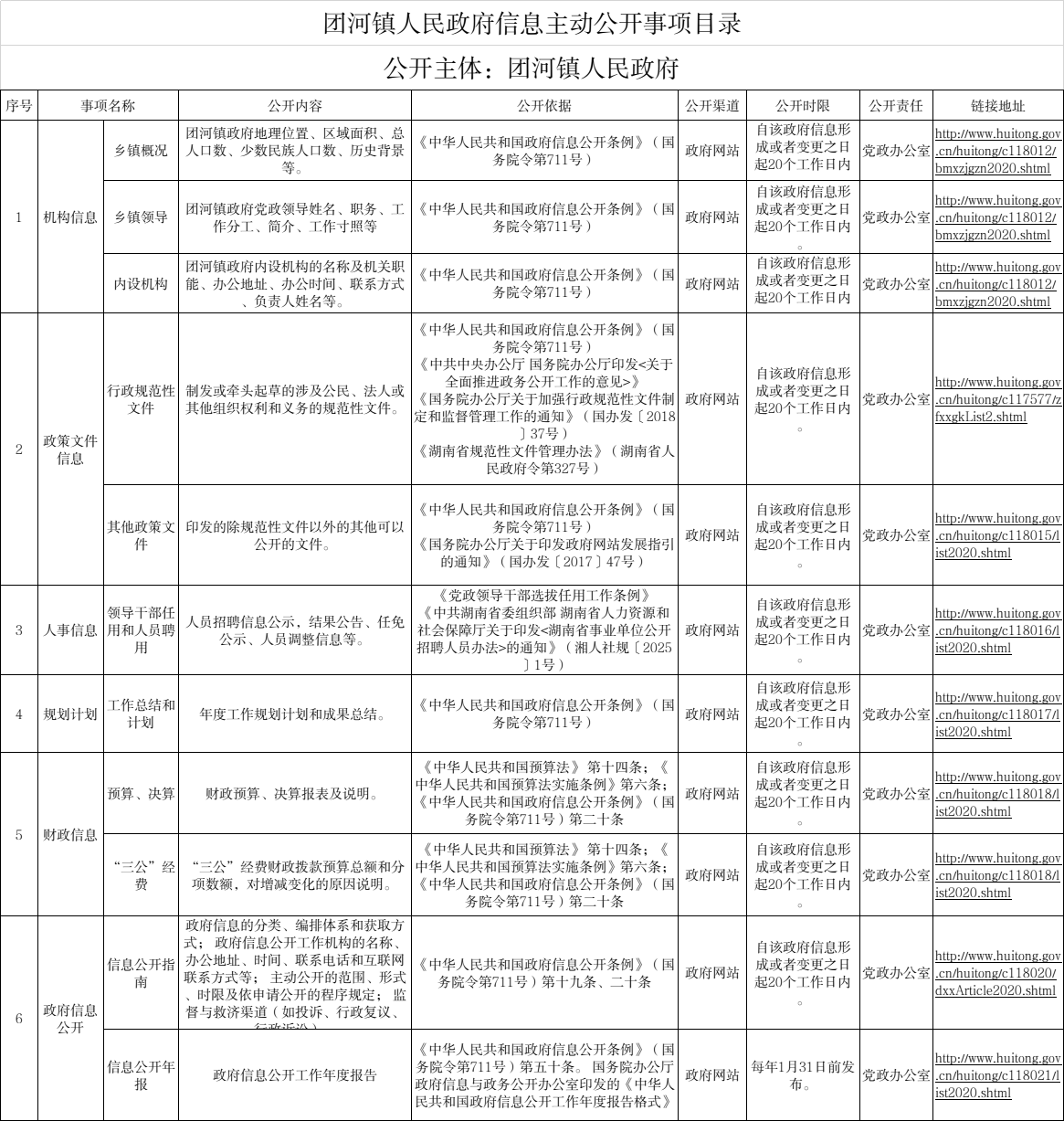 团河镇人民政府信息主动公开事项目录