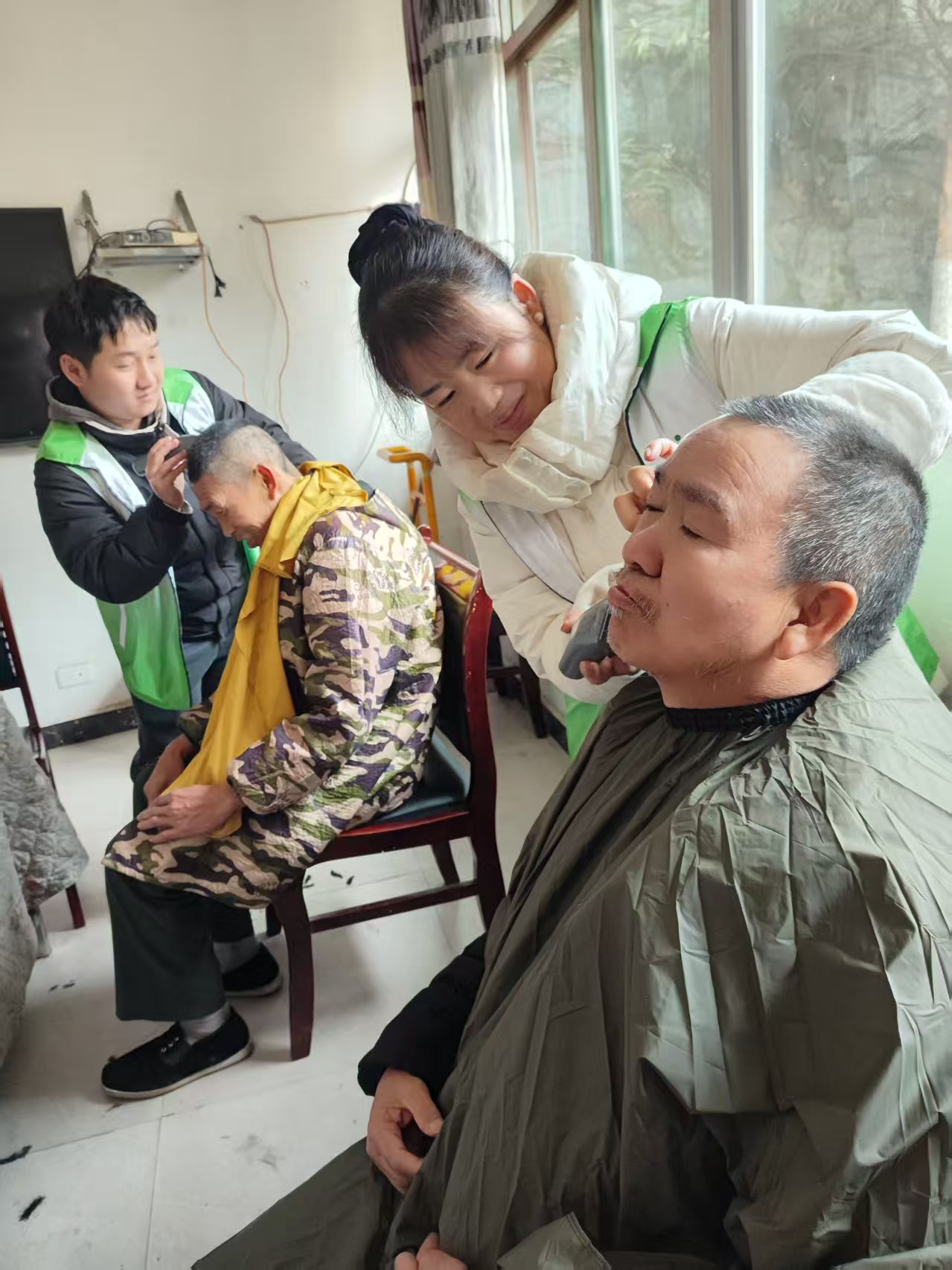 民政志愿者们分工协作、各展所长,用贴心服务为老人们构筑起“暖心屏障”。生活照料组的理发师们,为老人修剪发型、修剪指甲,并细致整理居室,让老人们焕发良好精神面貌;健康关怀组联合医护志愿者开展“健康护航”行动,为老人测量血压血糖、讲解慢性病防治知识,用专业守护筑牢健康防线;精神慰藉组则开展“倾听陪伴”行动,志愿者们与老人促膝长谈,听故事、拉家常,细致询问生活需求与身体状况,送上节日祝福,以温情驱散孤寂。身着红马甲的党员们化身“环境卫士”,清扫院落、擦拭门窗,并面对面讲解防诈骗知识、消防安全常识及老年人权益保障政策,将安全守护与法治宣传融入点滴行动。