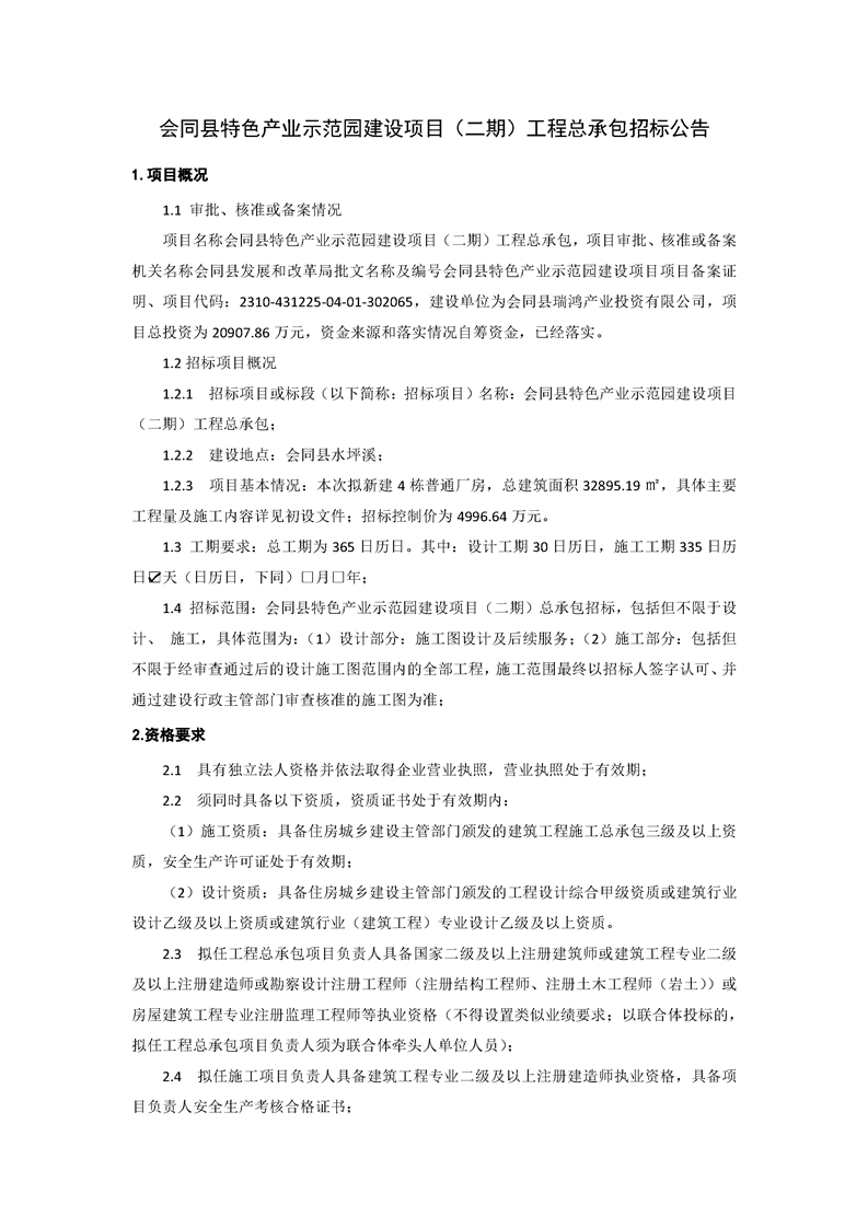 会同县特色产业示范园建设项目(二期)工程总承包招标公告