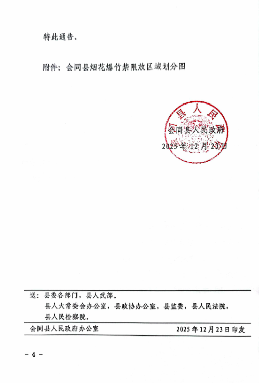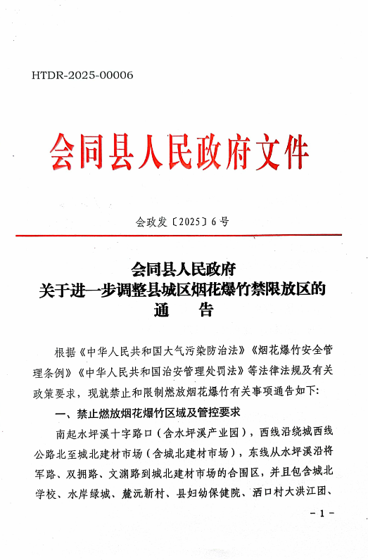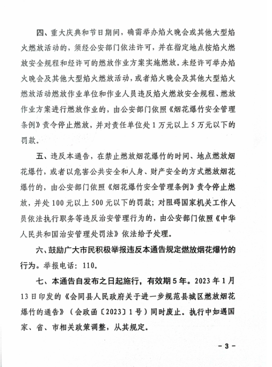 转发会同县人民政府关于进一步调整县城区烟花爆竹禁限放区的通告