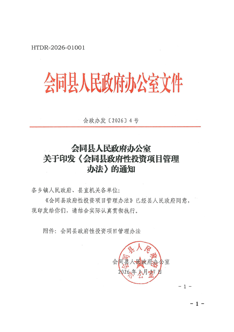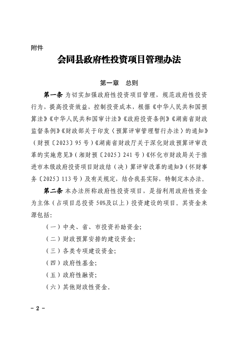会同县人民政府办公室关于印发《会同县政府性投资项目管理办法》的通知