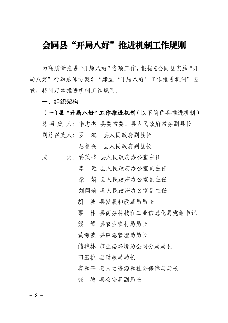 会同县人民政府办公室关于印发《会同县实施“开局八好”推进机制工作规则》的通知