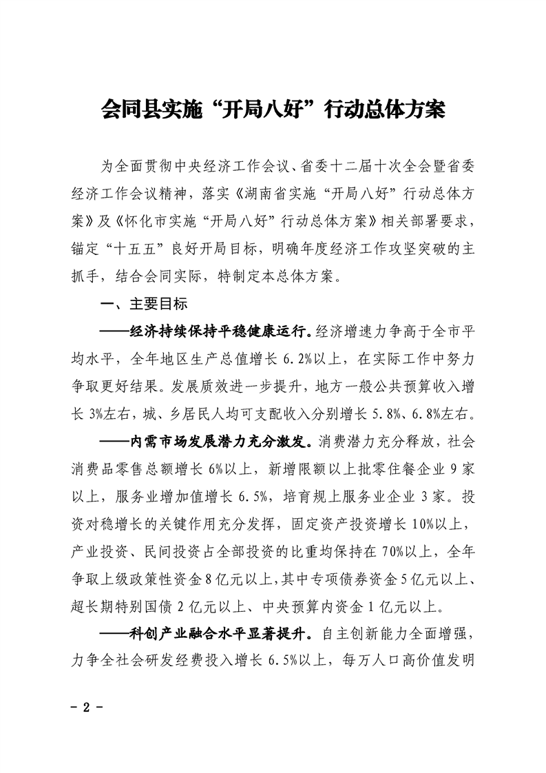会同县人民政府办公室关于印发《会同县实施“开局八好”行动总体方案》的通知