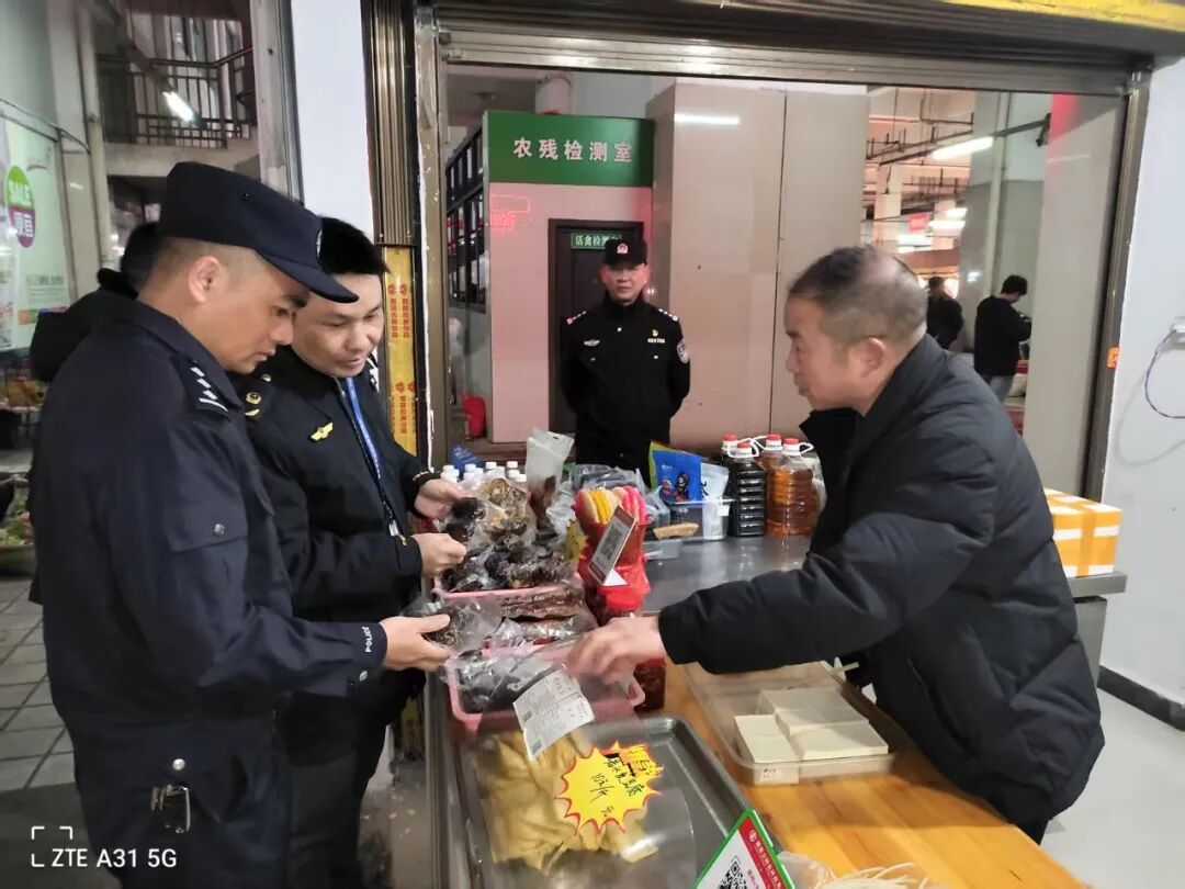 2月25日,检查组深入城区集贸市场、超市、餐馆、水产店等重点场所,通过“现场检查+台账核查+抽样检测+普法宣传”相结合的方式,重点围绕肉制品、生鲜水产、奶制品、冷冻制品等食品的经营主体资质、食品安全管理制度落实、经营场所环境卫生、餐用具清洗消毒、食品留样等关键环节开展全方位排查,重点规范食材采购索证索票、进货查验行为,强化食品接触用相关产品质量管控。检查过程中,执法人员同步开展法律法规宣传,向经营者和群众现场解读《食品安全法》等法律条文,增强全民懂法、守法意识。